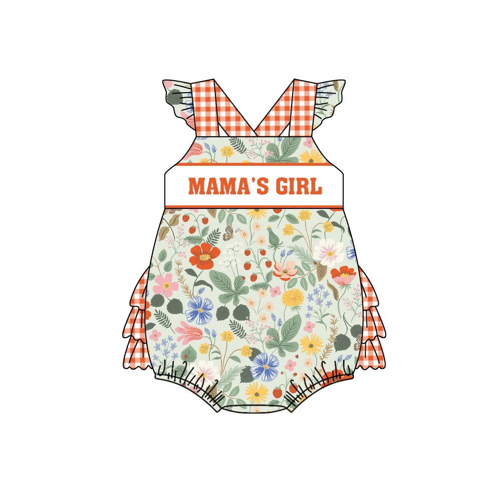 Baby Girls Mama's Girl Orange Floral Ruffle Rompers preorder(moq 5)