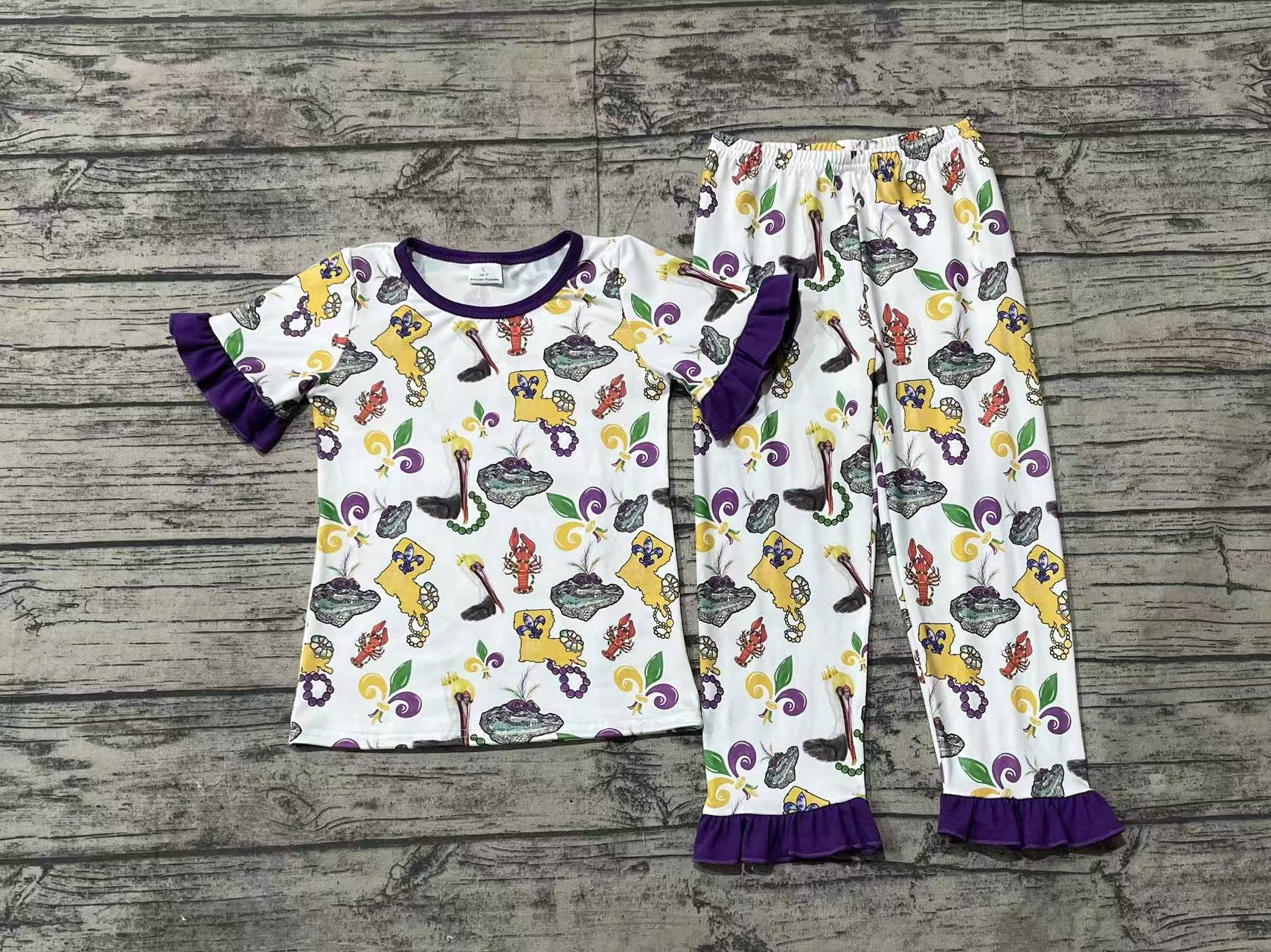 Baby Girls Mardi Gras Bird Crawfish Shirt Pants Pajamas Clothes Sets