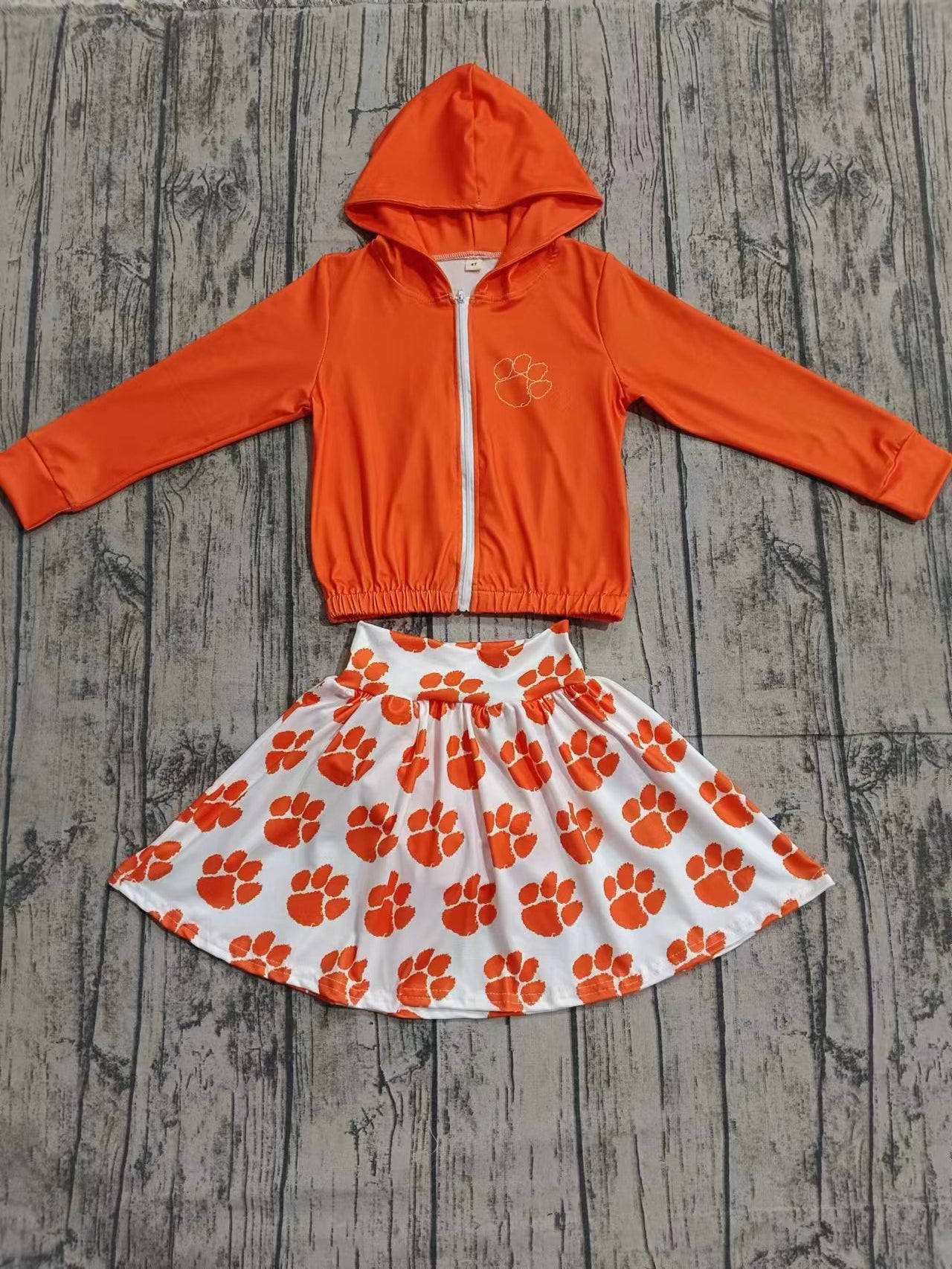 Baby Girls Orange Team Hooded Top Skirts Clothes Sets preorder(moq 5)