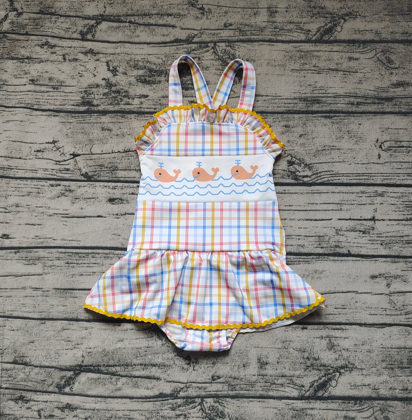 Baby Girls Orange Whales Ruffle One Piece Swimsuits