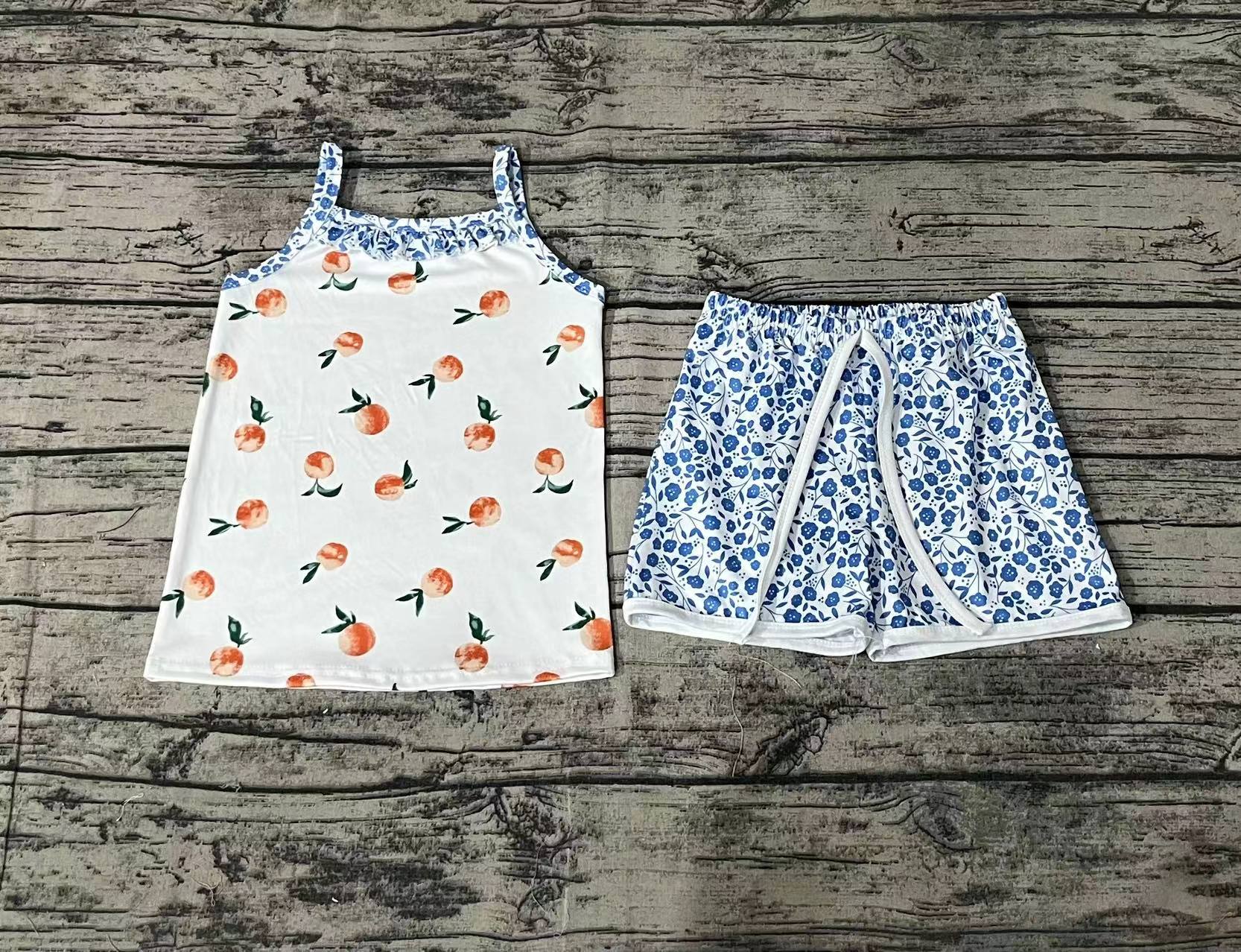 Baby Girls Peach Fruit Straps Top Shorts Summer Clothes Sets