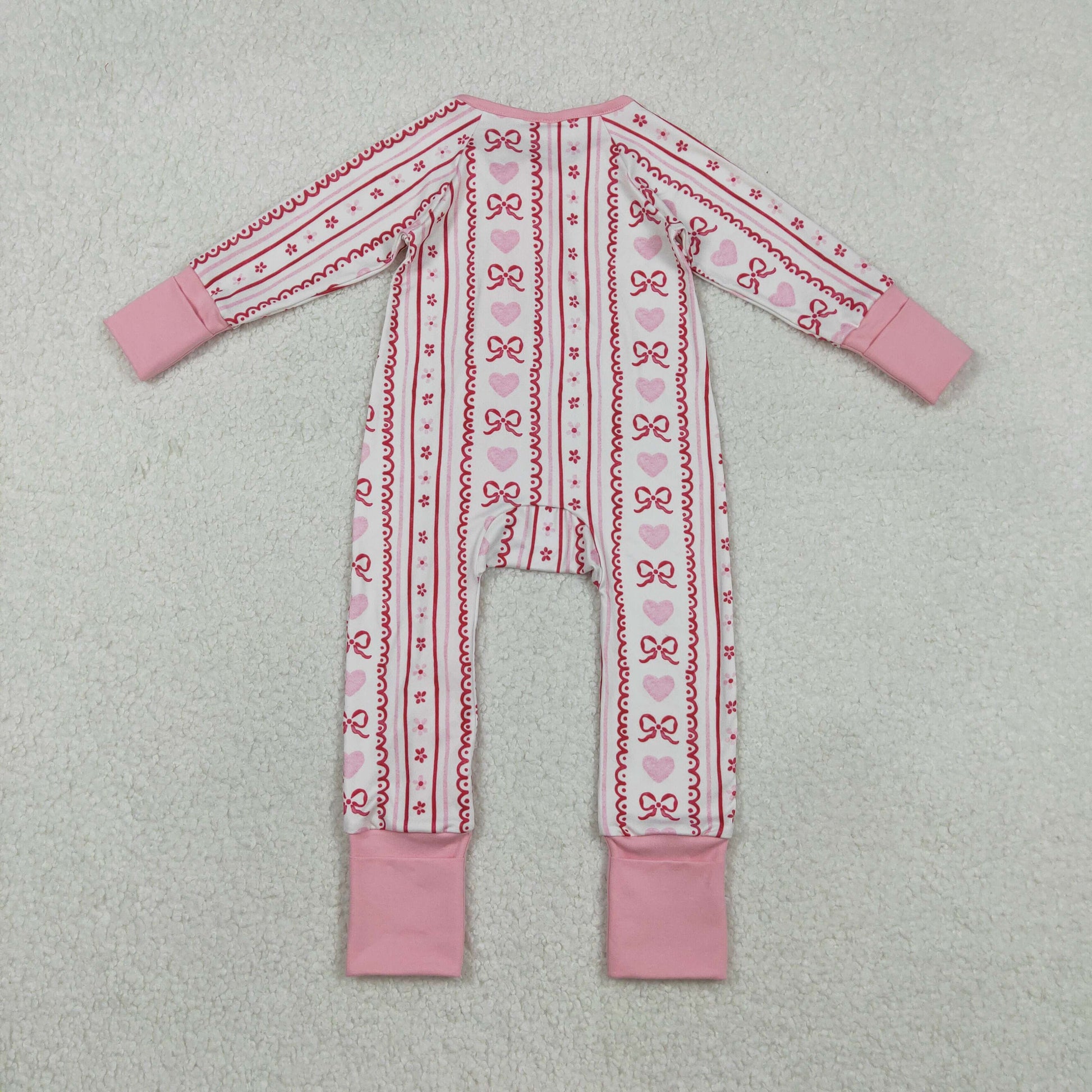 Baby Girls Pink Bows Hearst Stripe Valentines Two Way Ruffle Zip Convertible Rompers