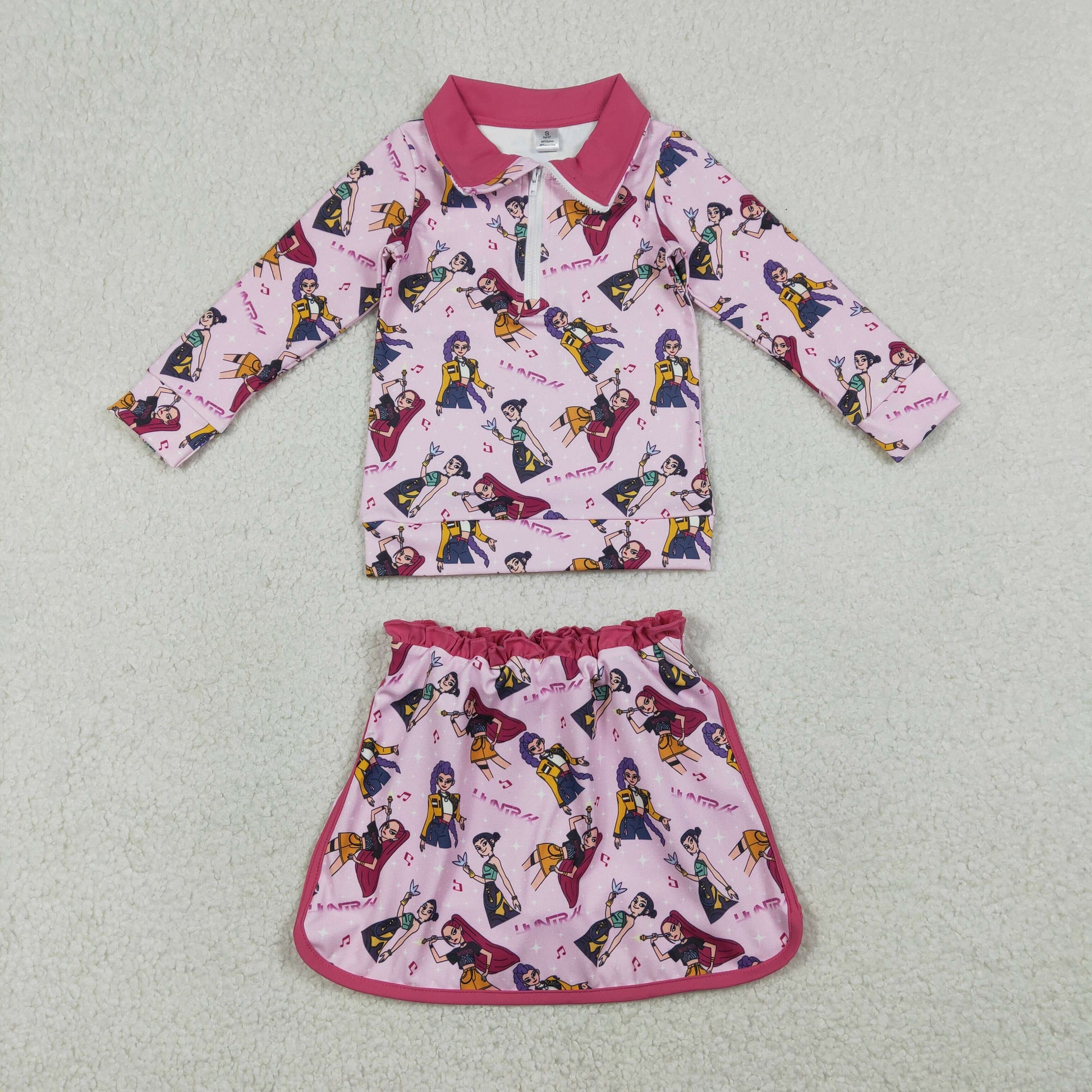 Baby Girls Pink Demon Hunter Zipper Pullovers Skirt Shorts Yoga Active Clothes Sets