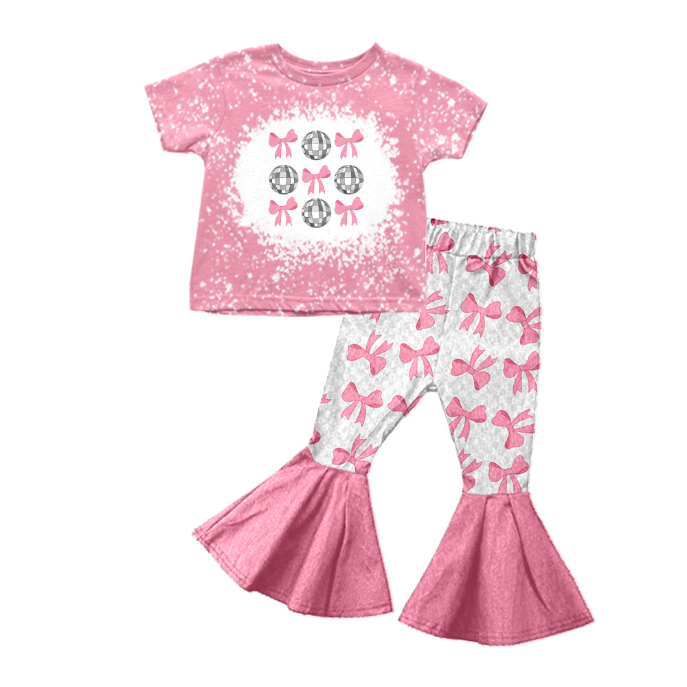 Baby Girls Pink Disco Bows Top Bell Pants Clothes Sets preorder (moq 5)