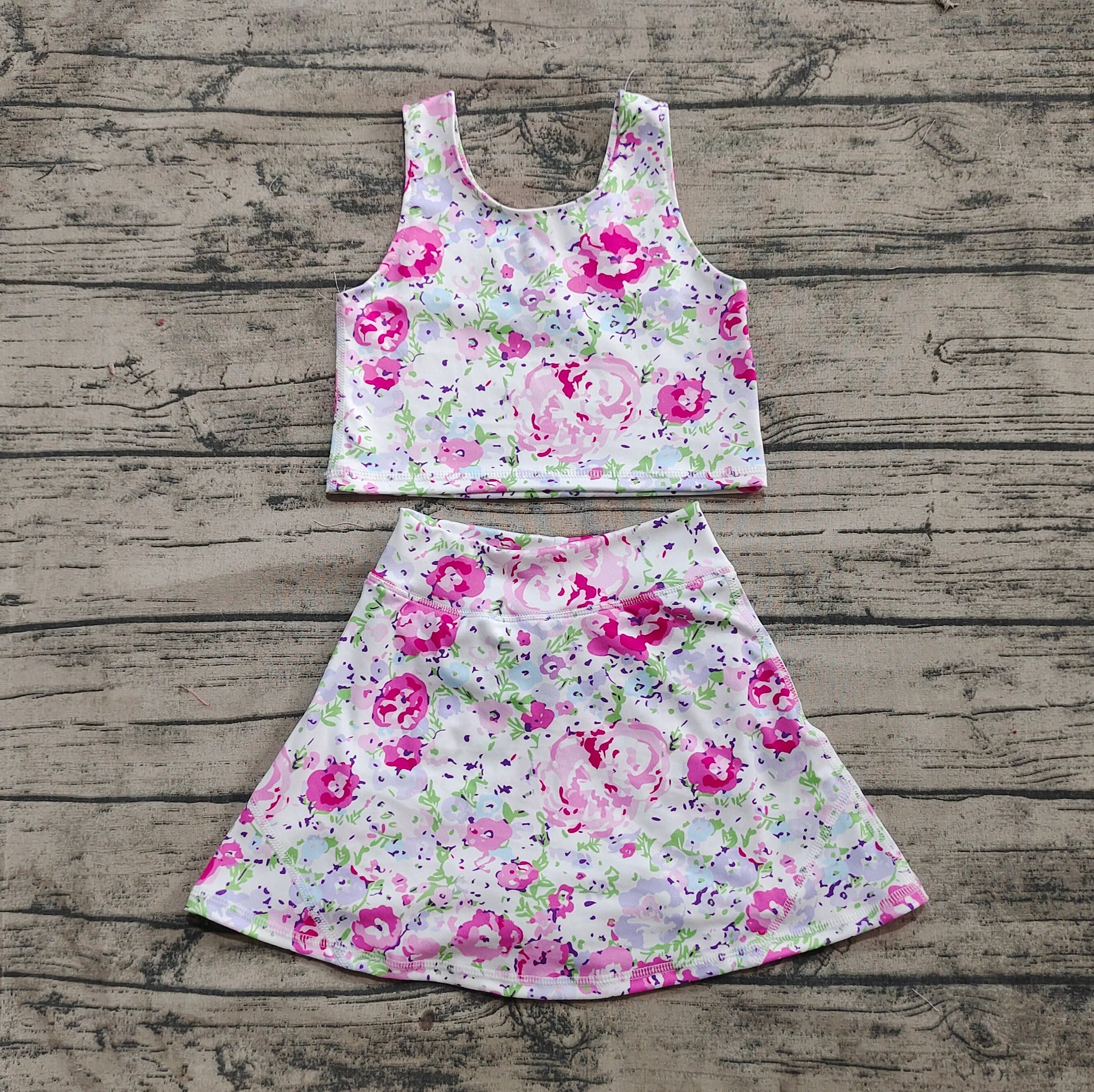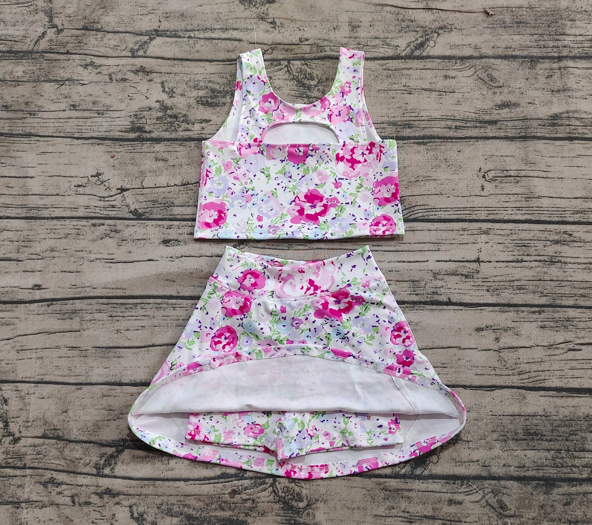 Baby Girls Pink Flowers Athletic Active Wear Top Shorts Skirts Clothes Sets