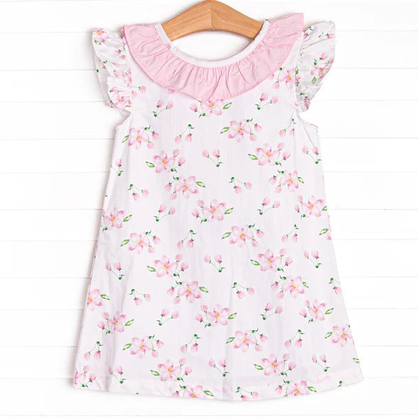 Baby Girls Pink Flowers Flutter Sleeve Ruffle Knee Length Dresses Preorder(moq 5)