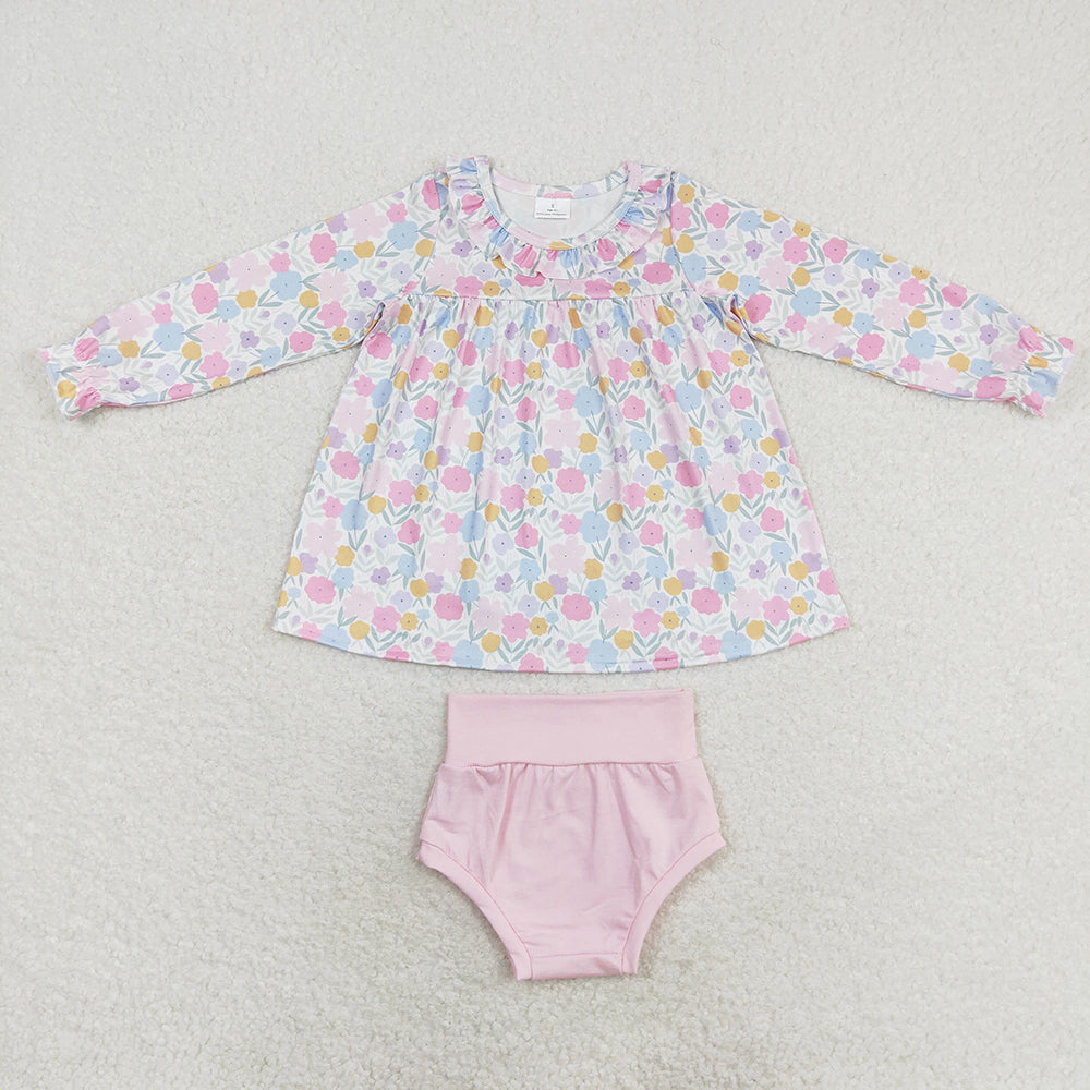 Baby Girls Pink Flowers Long Sleeve Top Bummie Sets