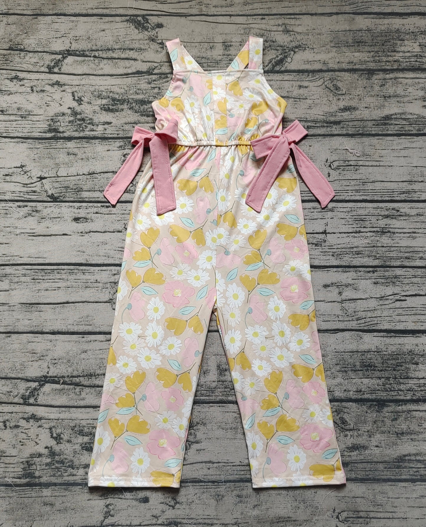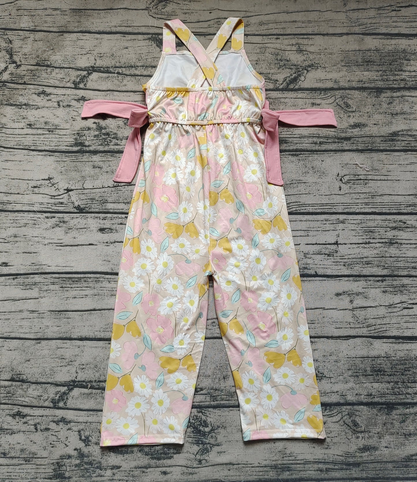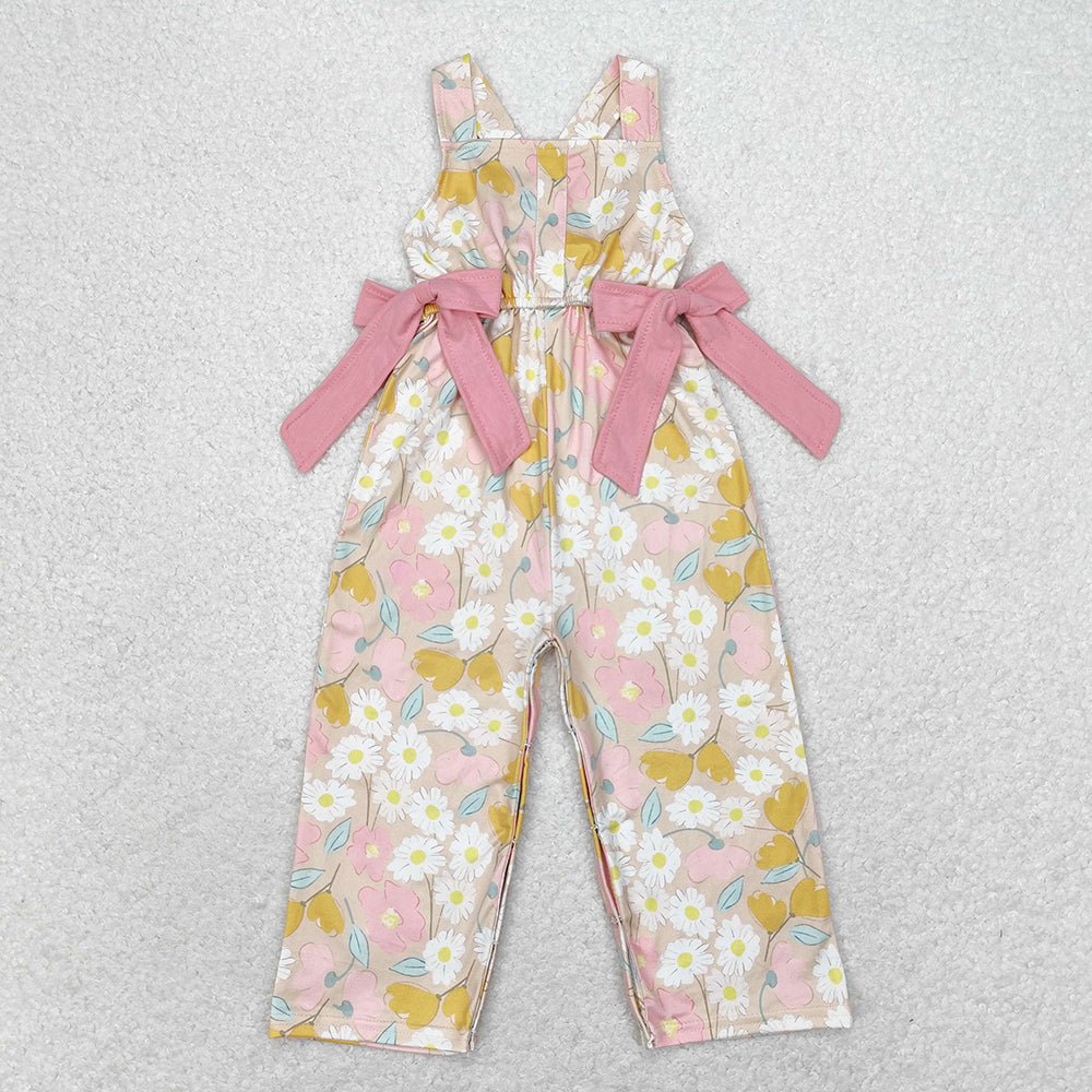Baby Girls Pink Flowers Straps Bows Long Pants Jumpsuits