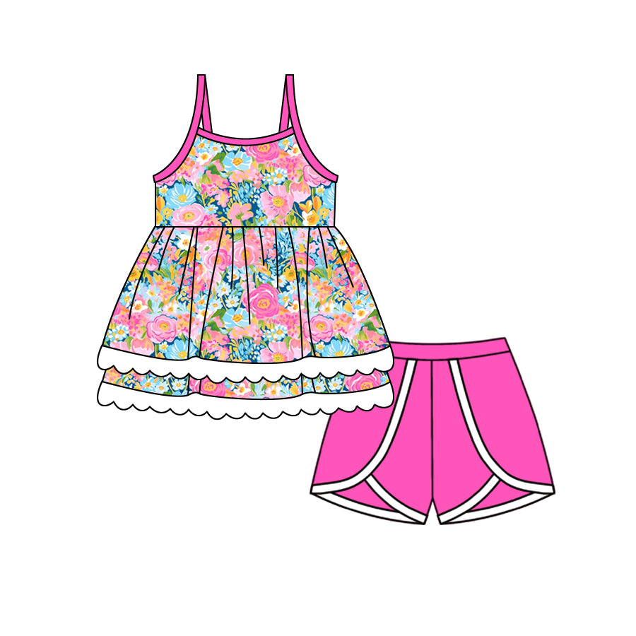 Baby Girls Pink Flowers Tunic Shorts Clothes Sets preorder (moq 5)