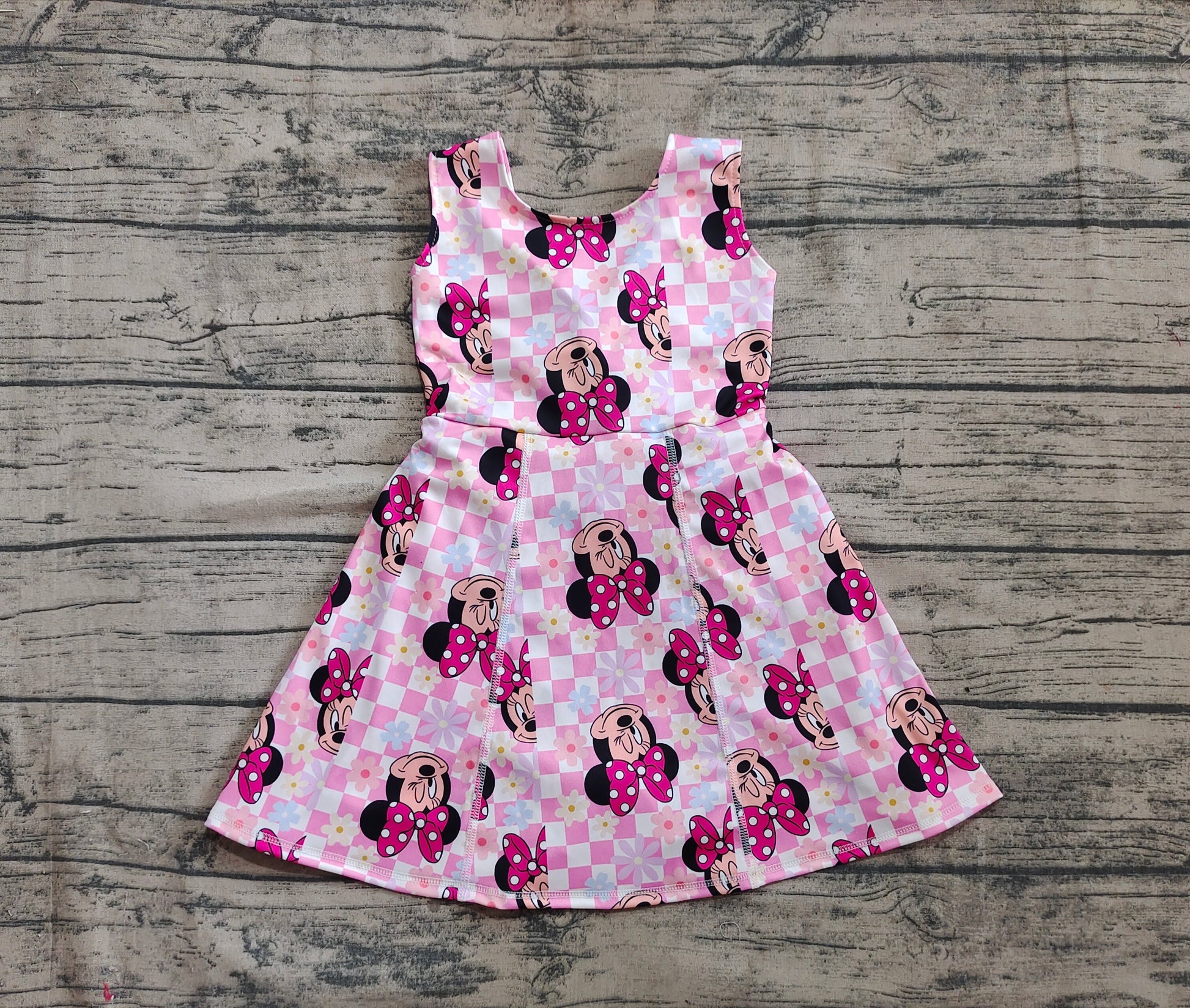 Baby Girls Pink Plaid Sleeveless Cartoon Mouse Yoga Skort Knee Length Dresses