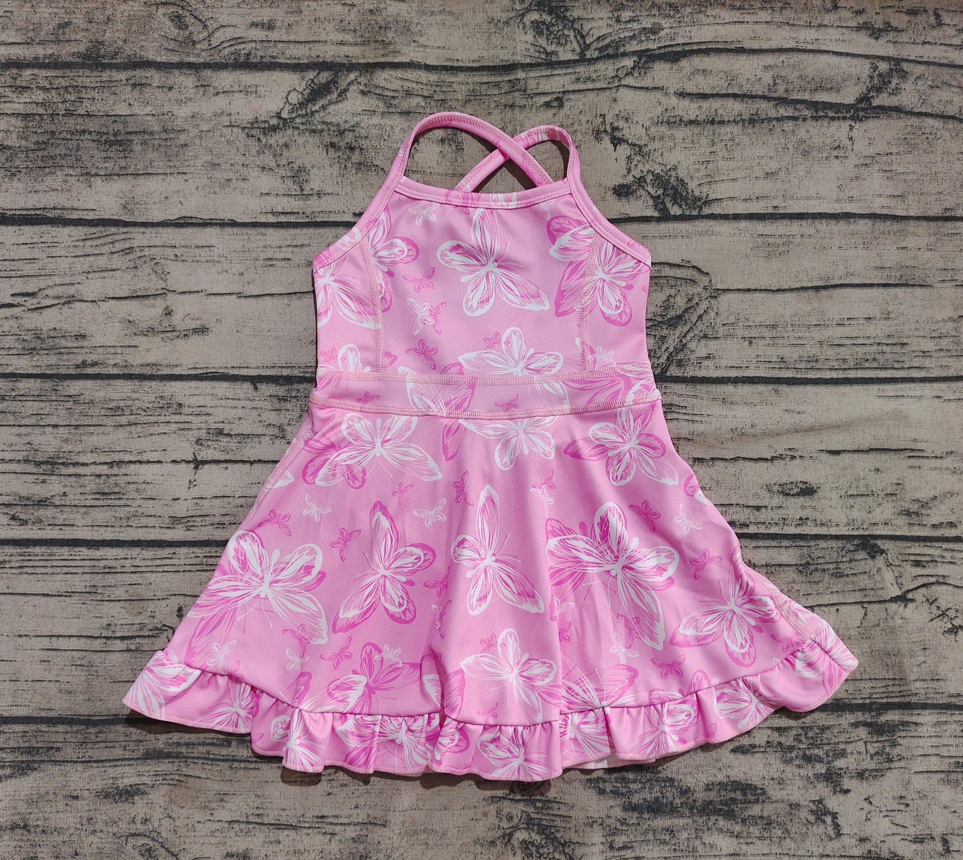 Baby Girls Pink Strap Butterfly Yoga Ruffle Knee Length Dresses