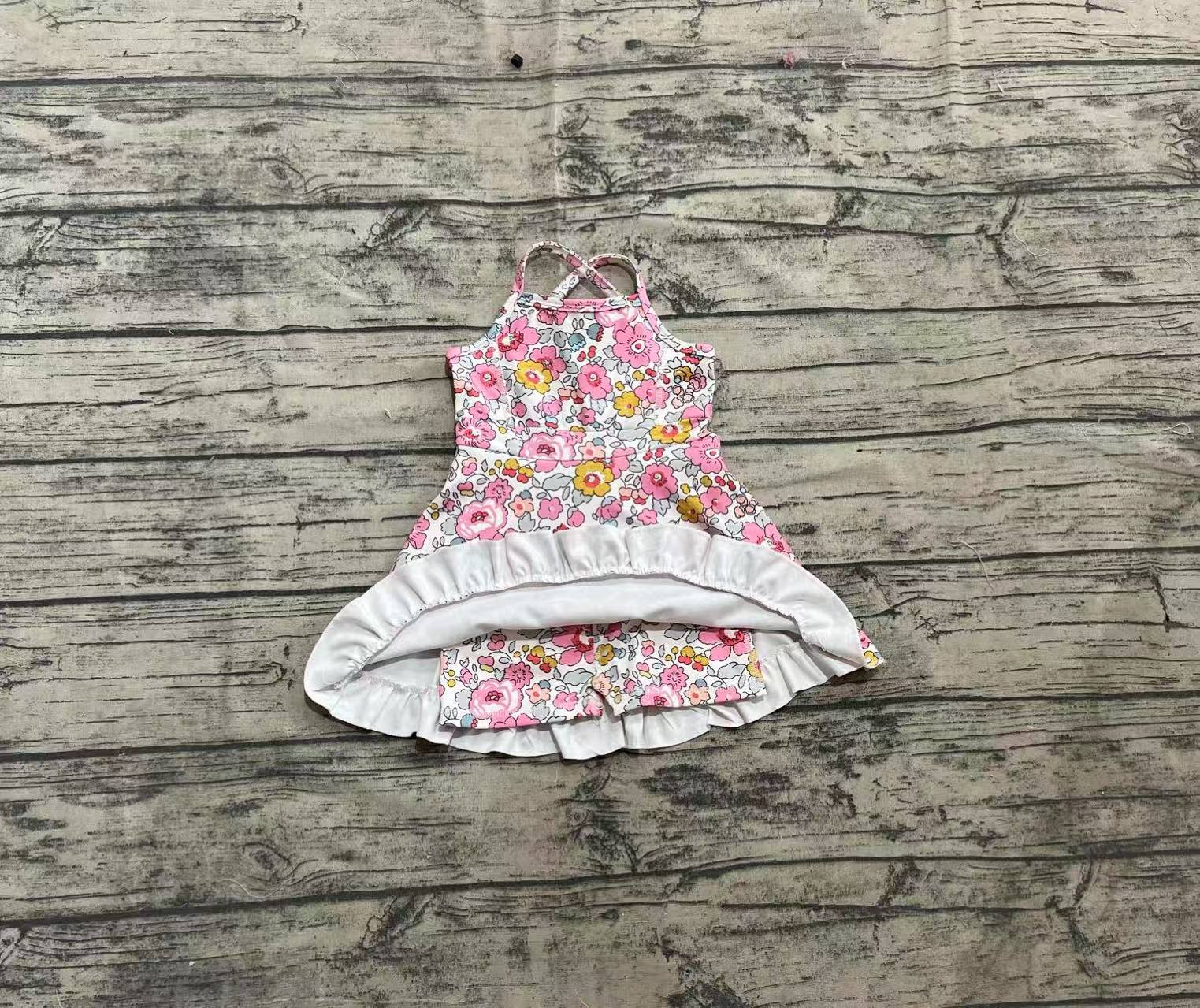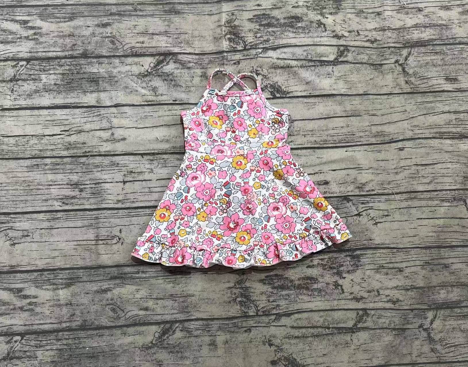 Baby Girls Pink Strap Floral Yoga Ruffle Knee Length Dresses