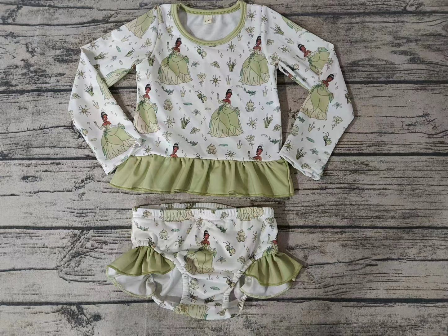 Baby Girls Princess Frog Ruffle Top Bummie Swimsuits Clothes Sets Preorder(moq 5)