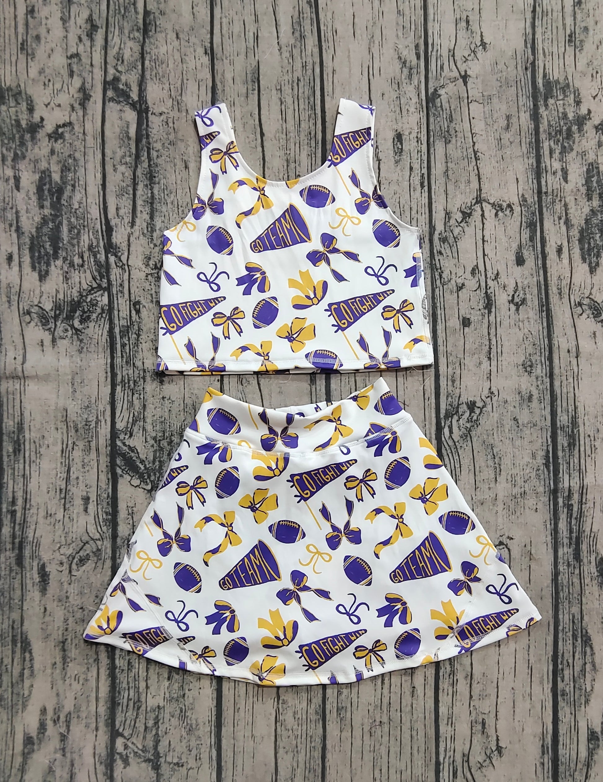 Baby Girls Purple Footballs Bows Plaid Vest Top Skorts Team Yoga Active Set