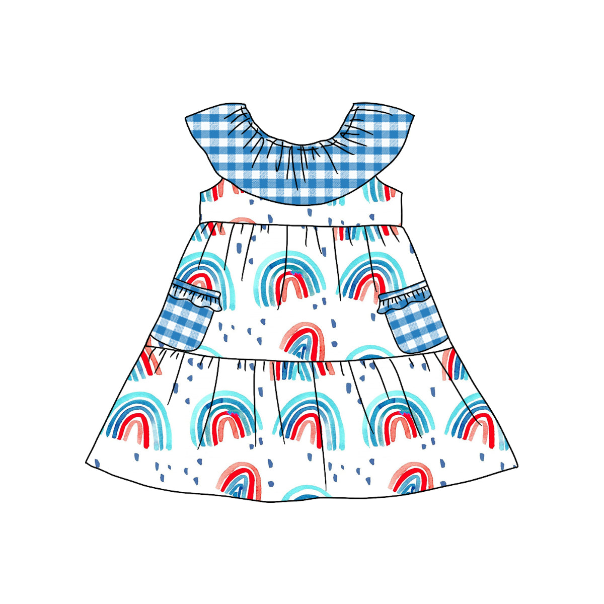 Baby Girls Rainbow 4th of July Pockets Knee Length Dresses Preorder(moq 5)