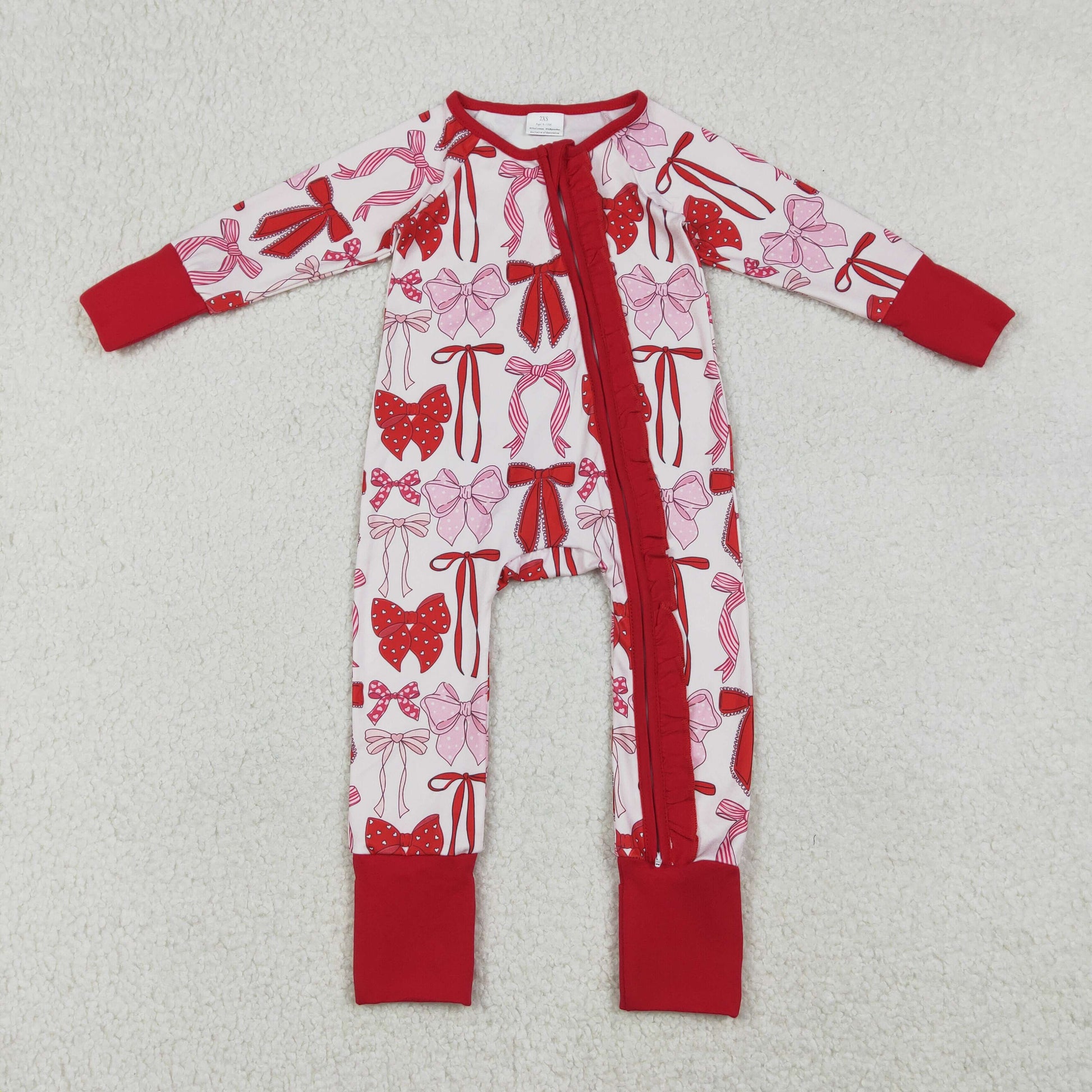 Baby Girls Red Bows Plaid Valentines Two Way Ruffle Zip Convertible Rompers