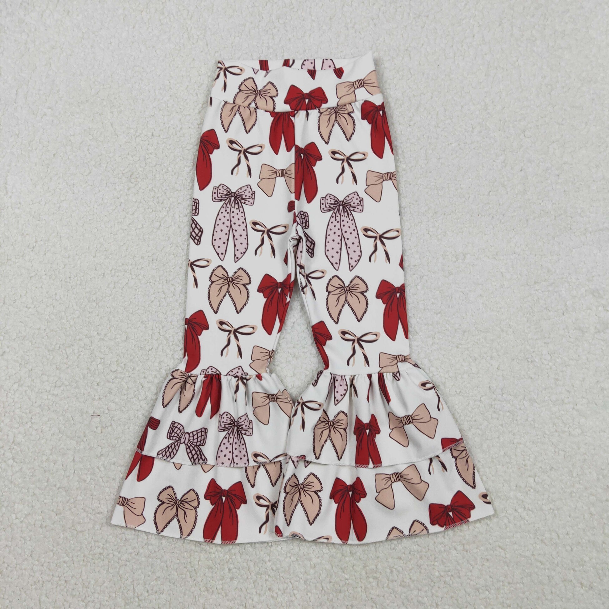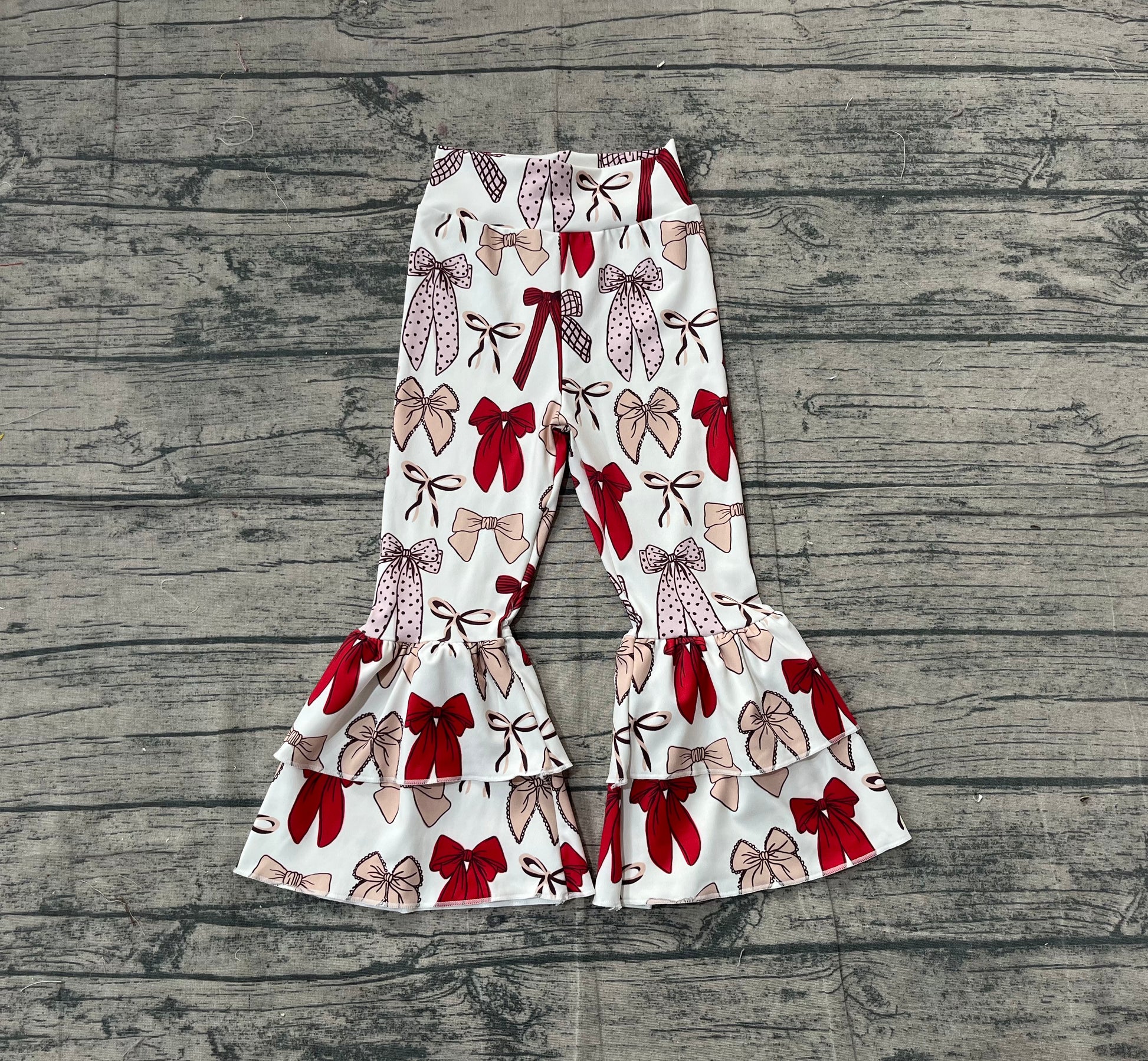 Baby Girls Red Bows Yoga Active Ruffle Bell Bottom Pants