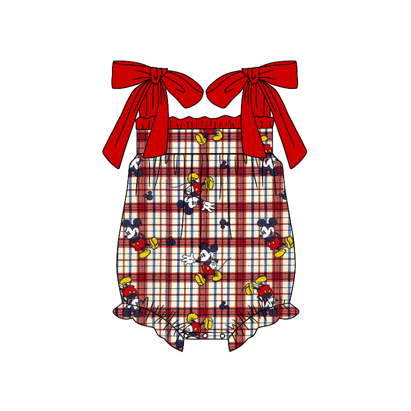 Baby Girls Red Checkered Cartoon Mouse Straps Ruffle Summer Rompers preorder(moq 5)