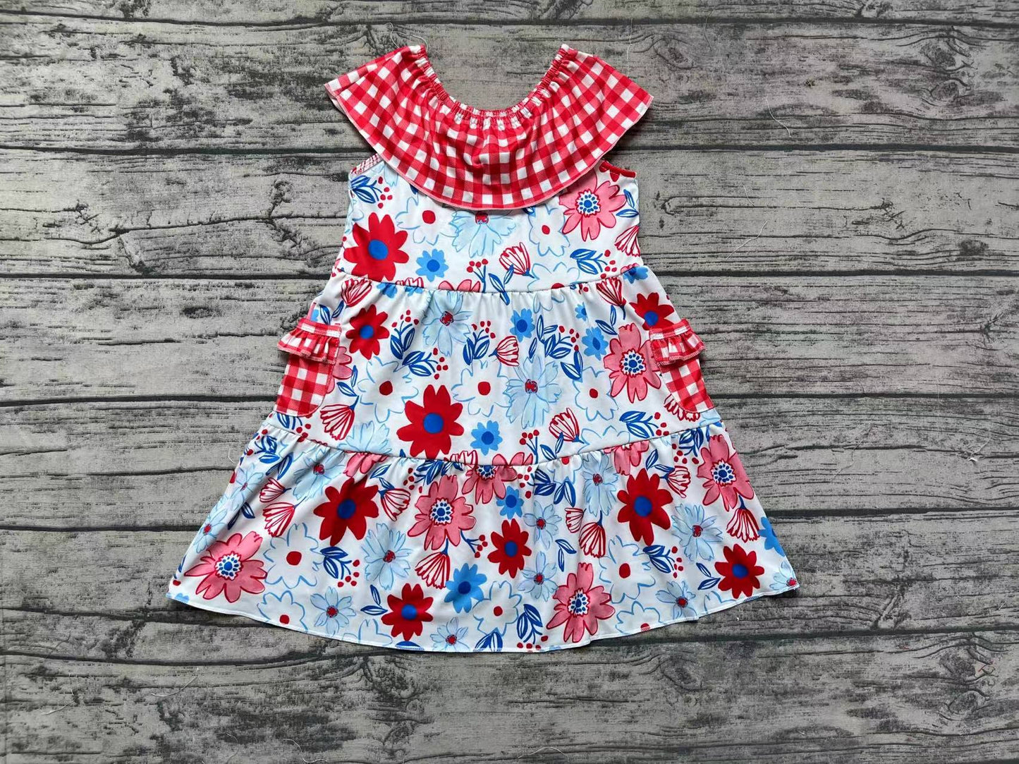 Baby Girls Red Flowers Pockets Knee Length Dresses