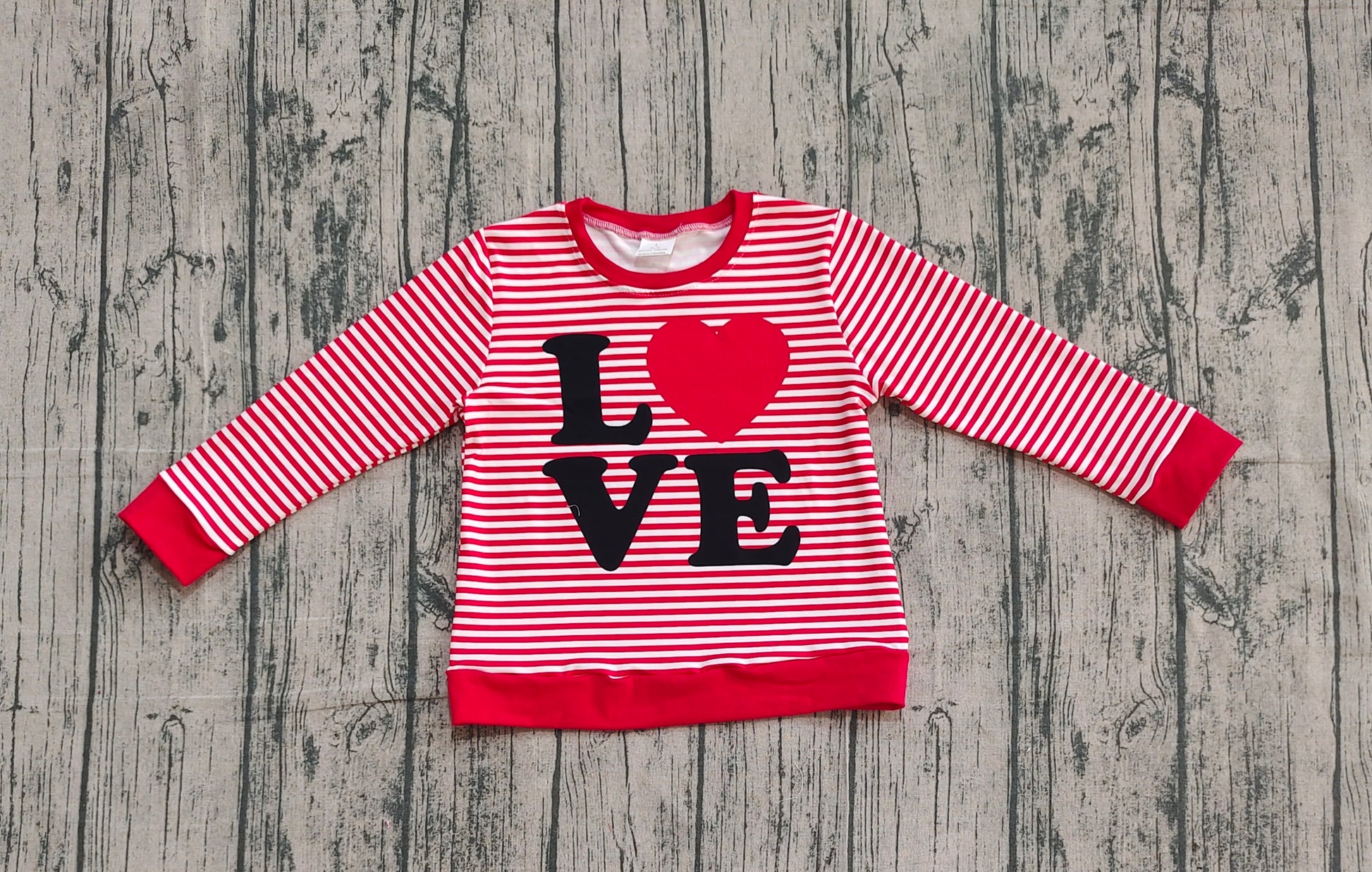 Baby Girls Red Stripe Love Heart Valentine Tee Shirts Top