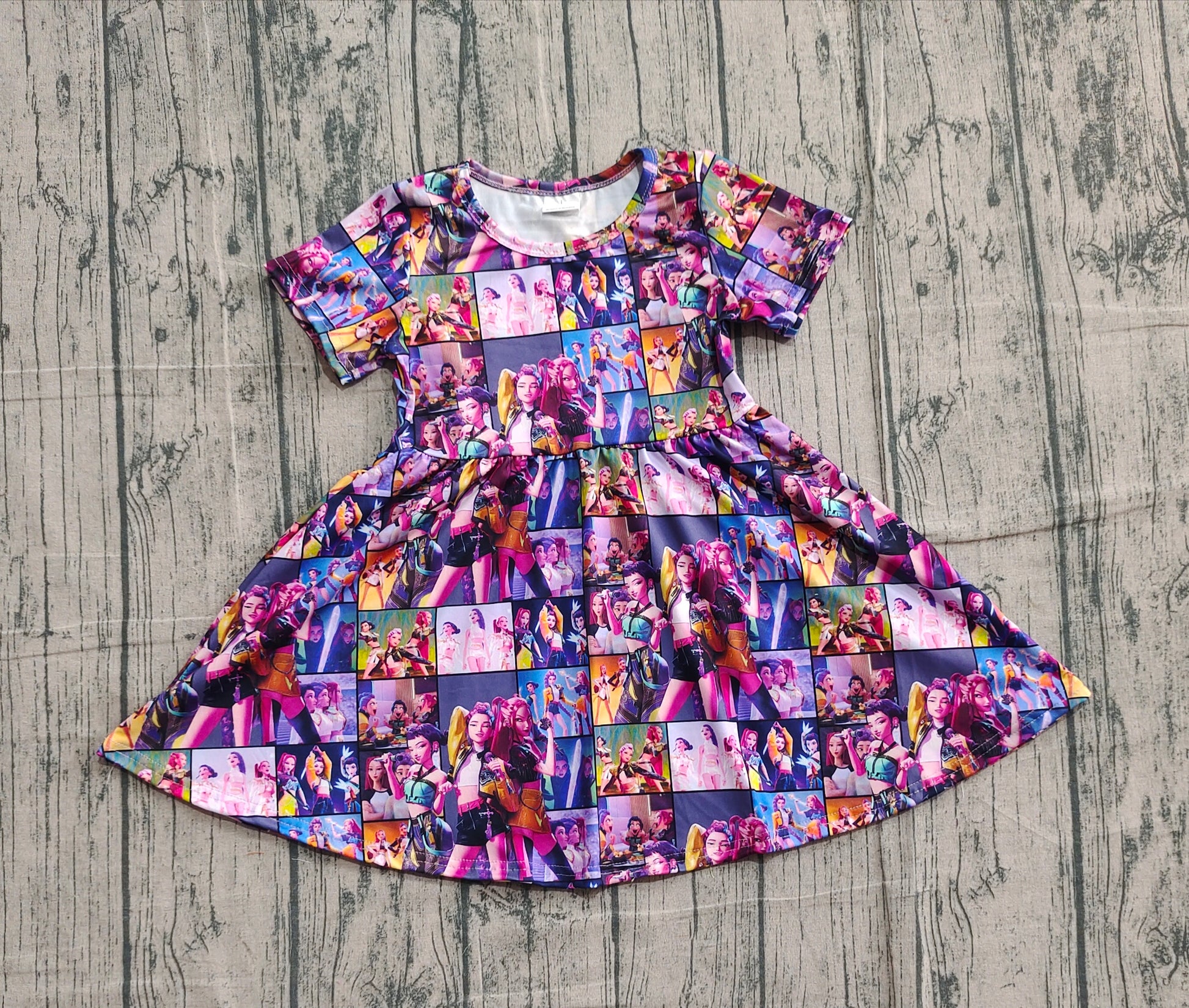 Baby Girls Short Sleeve Demon Hunter Checked Knee Length Dresses