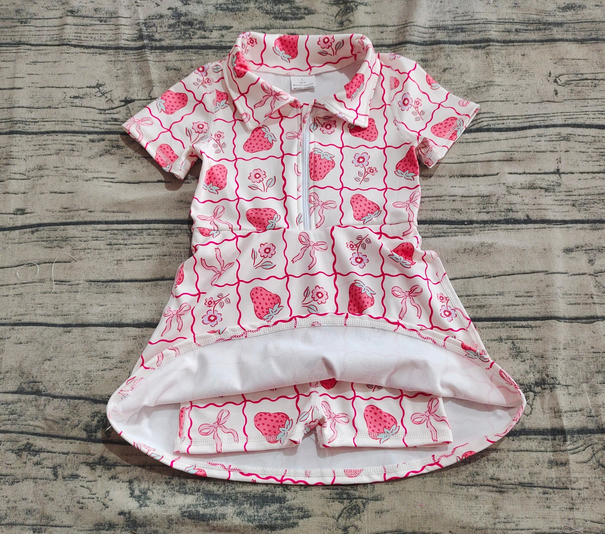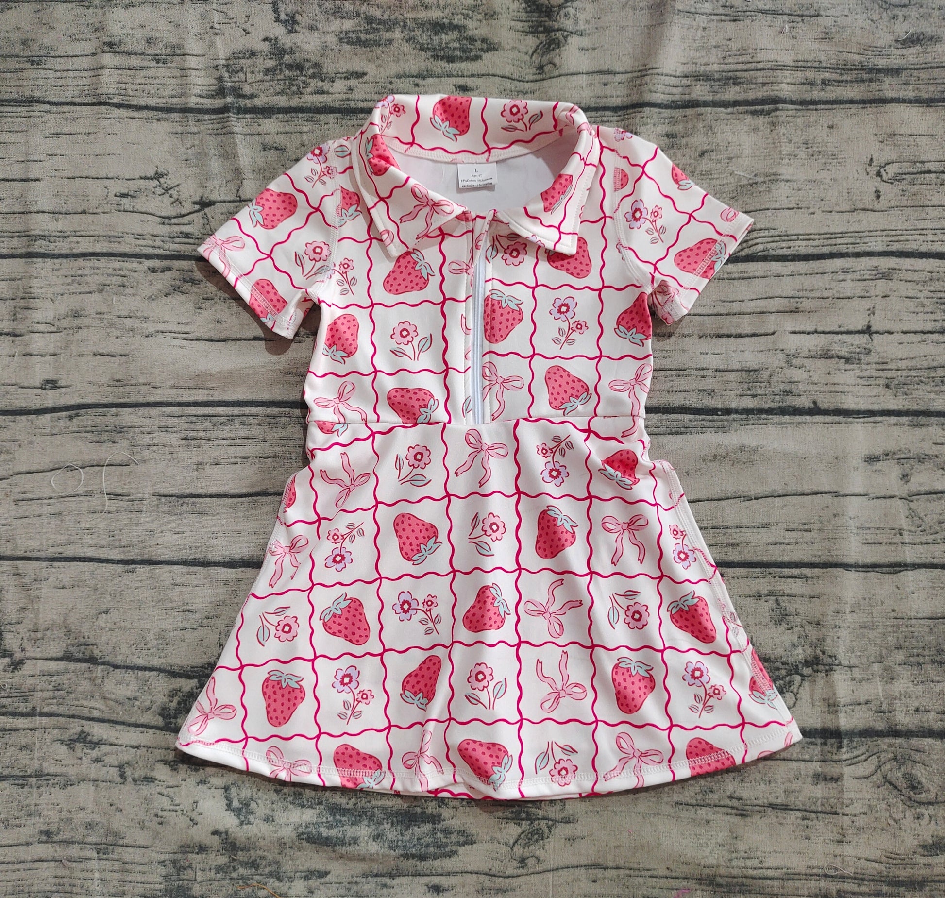 Baby Girls Short Sleeves Bows Strawberry Zipper Yoga Knee Length Dresses