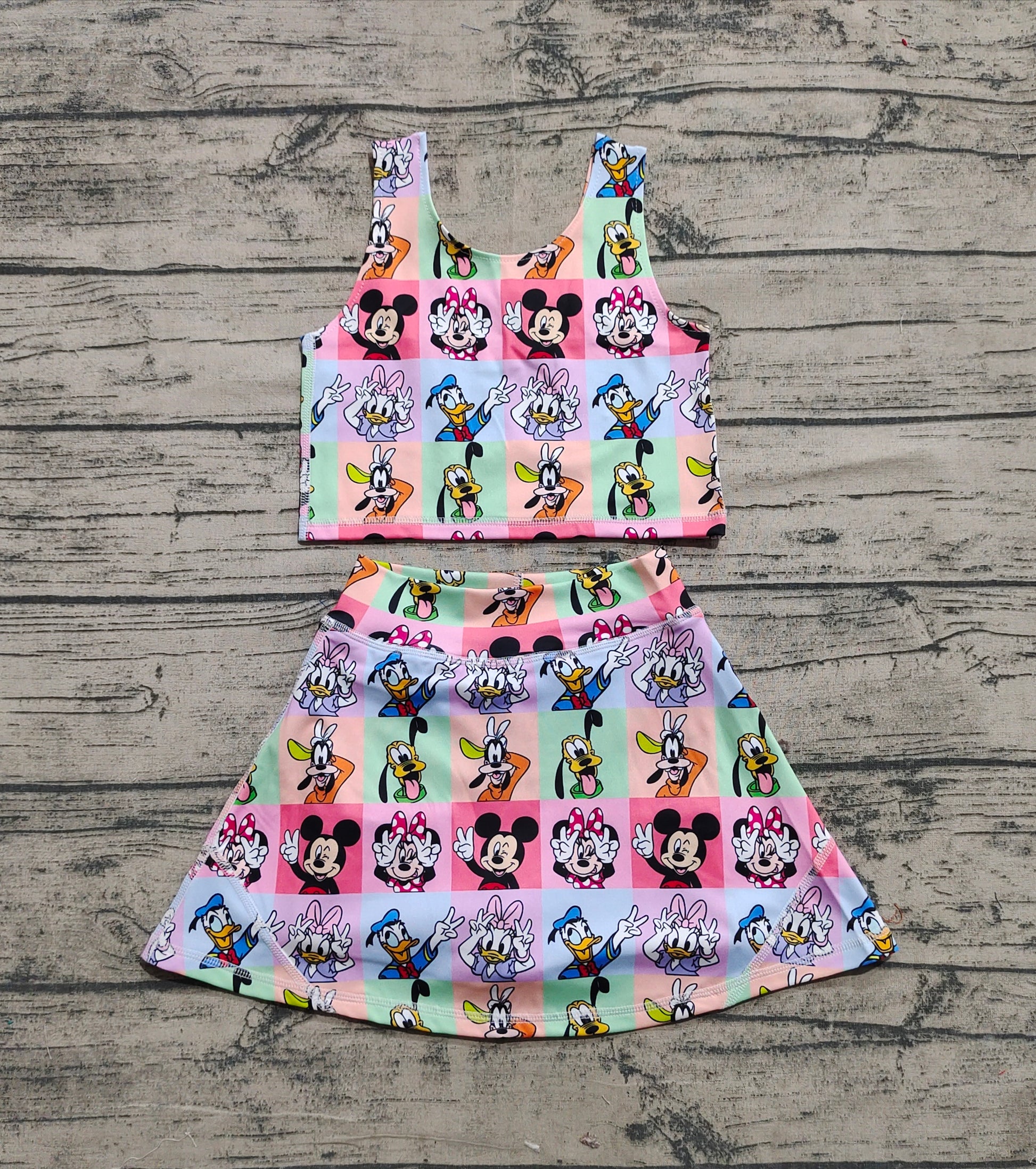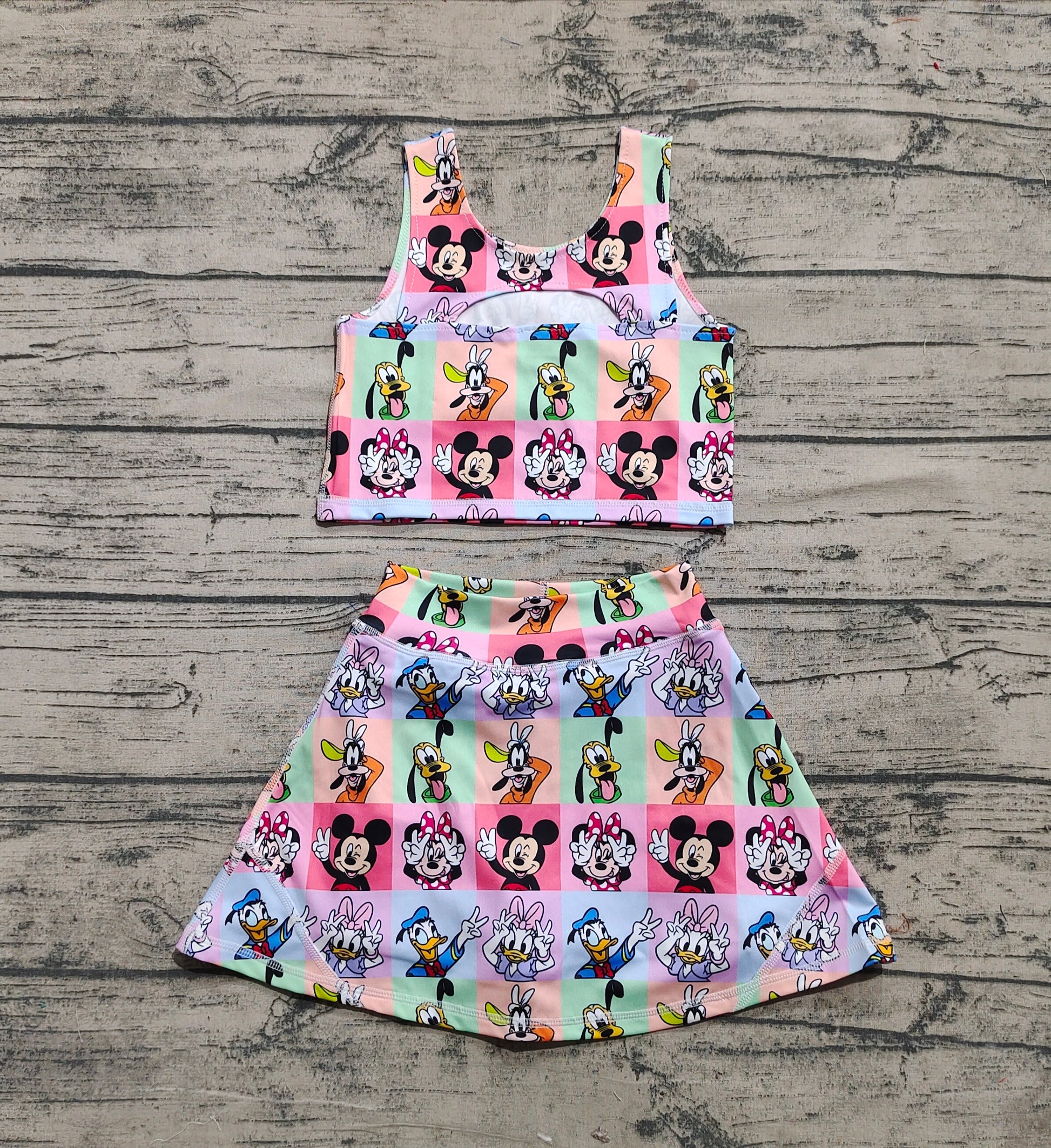 Baby Girls Sleeveless Cartoon Mouse Ducks Plaid Top Skort Yoga Sets