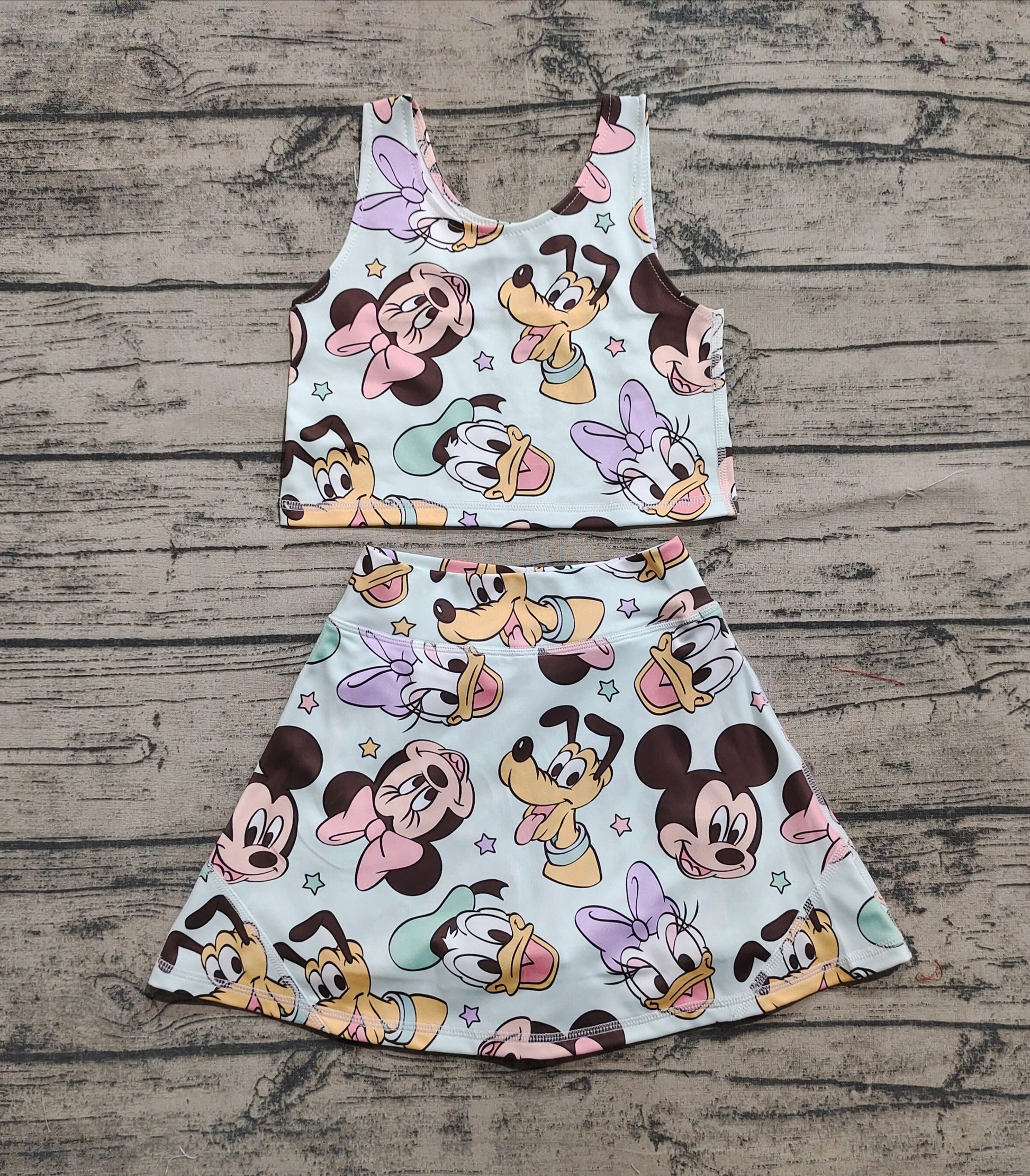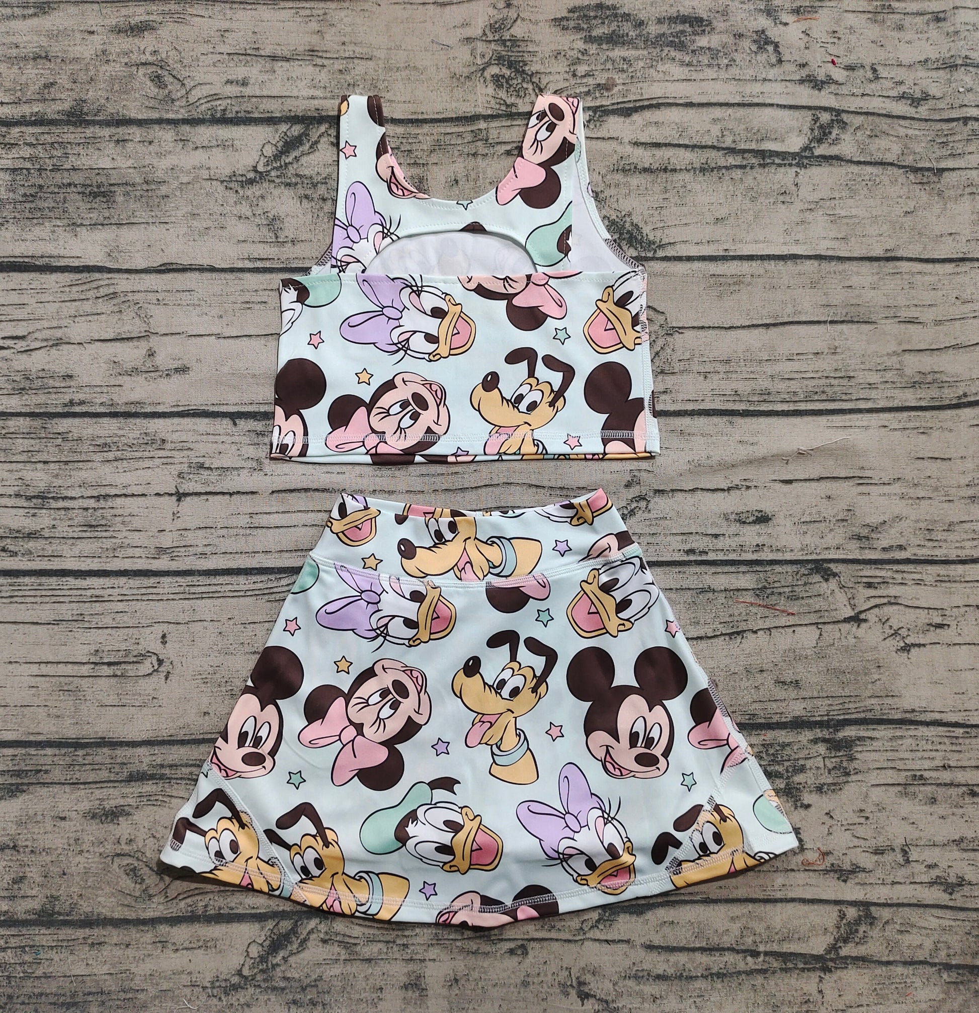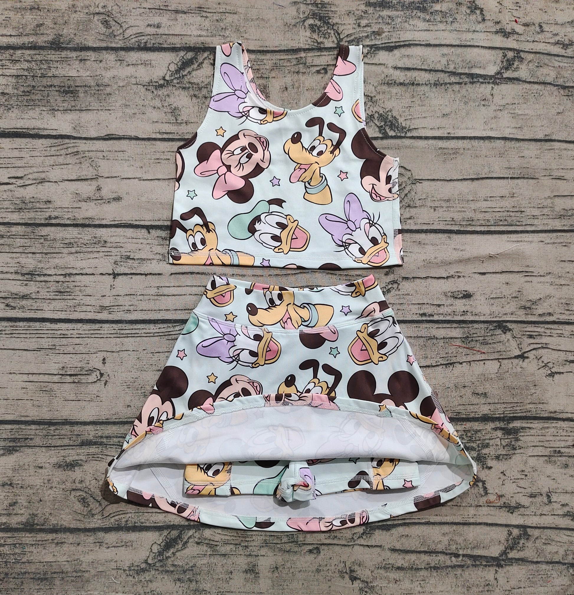 Baby Girls Sleeveless Cartoon Mouse Ducks Top Skort Yoga Sets