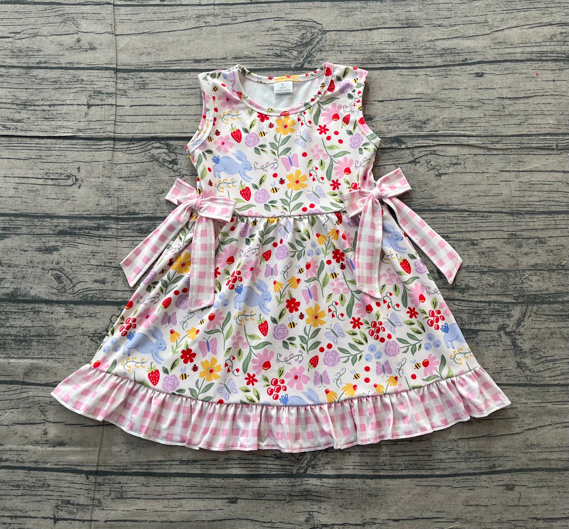 Baby Girls Colorful Rabbit Flowers Bows Easter Ruffle Knee Length Dresses Preorder