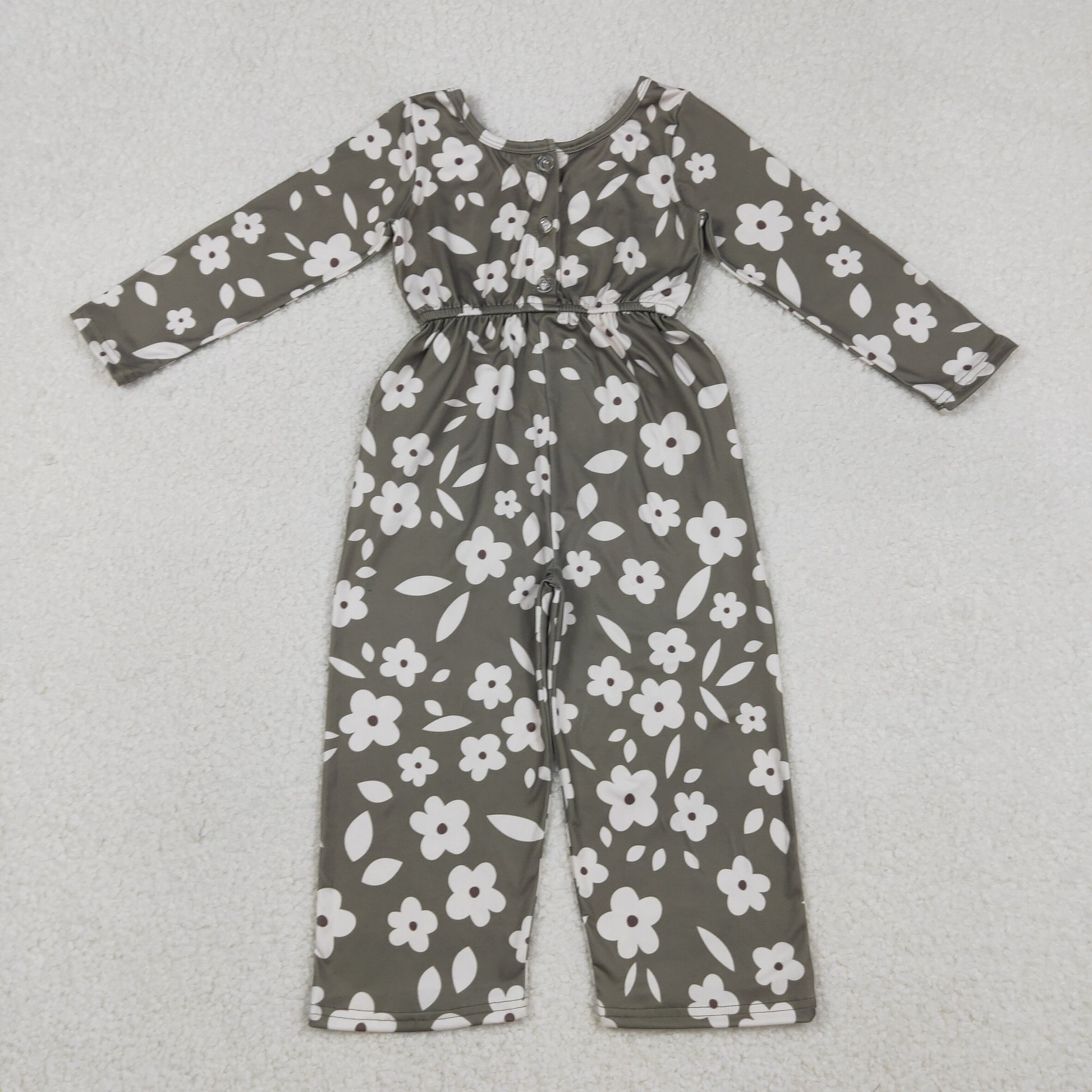 Baby Girls Small Flowers Plaid Pockets Pants Jumpsuits