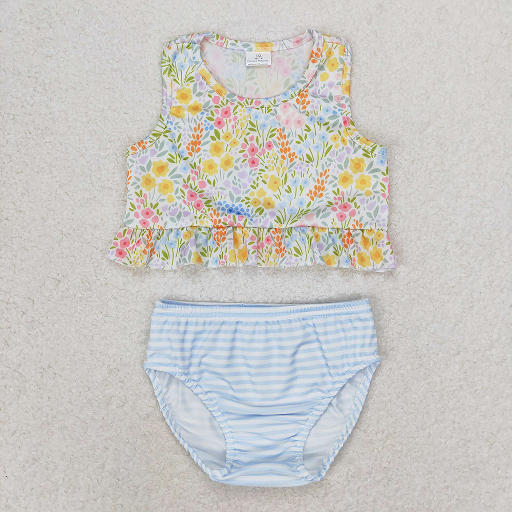 Baby Girls Small Flowers Ruffle Top Bummie Two Pieces Swimsuits