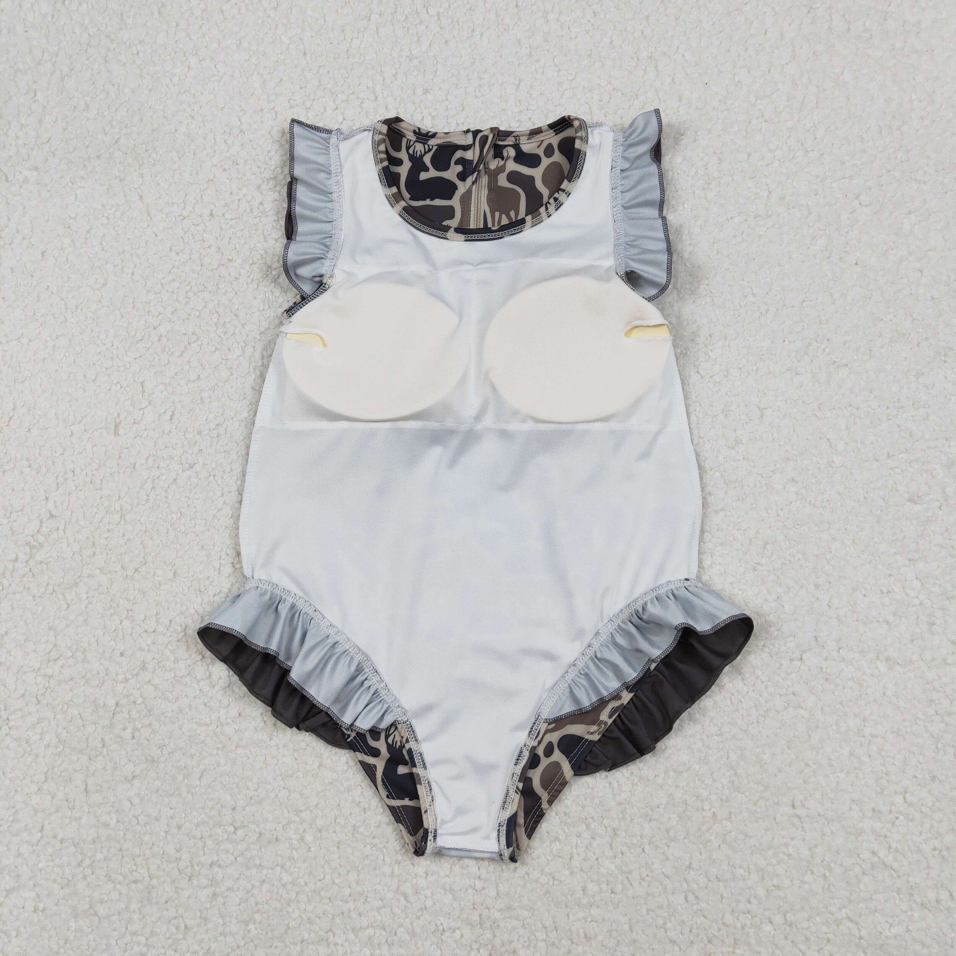 Baby Girls Southern Dark Brown Deer Camo Zipper Ruffle Swimsuits