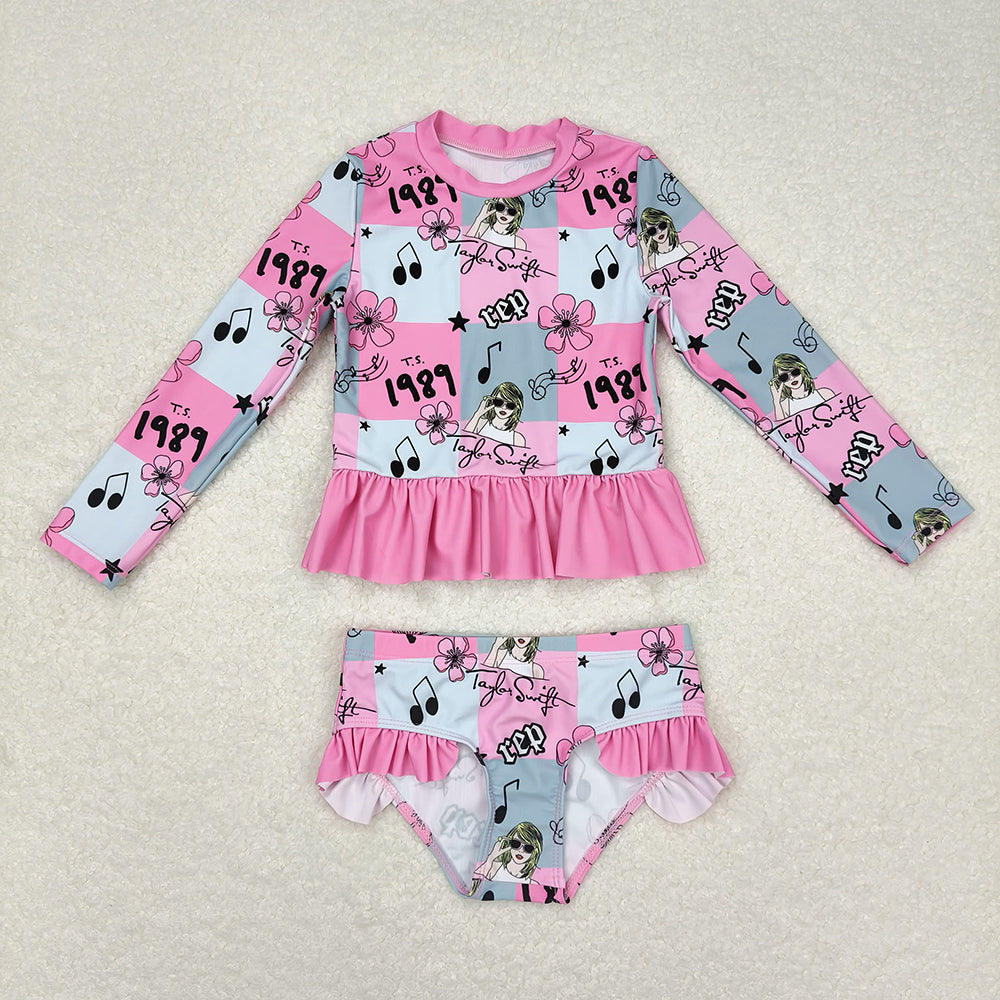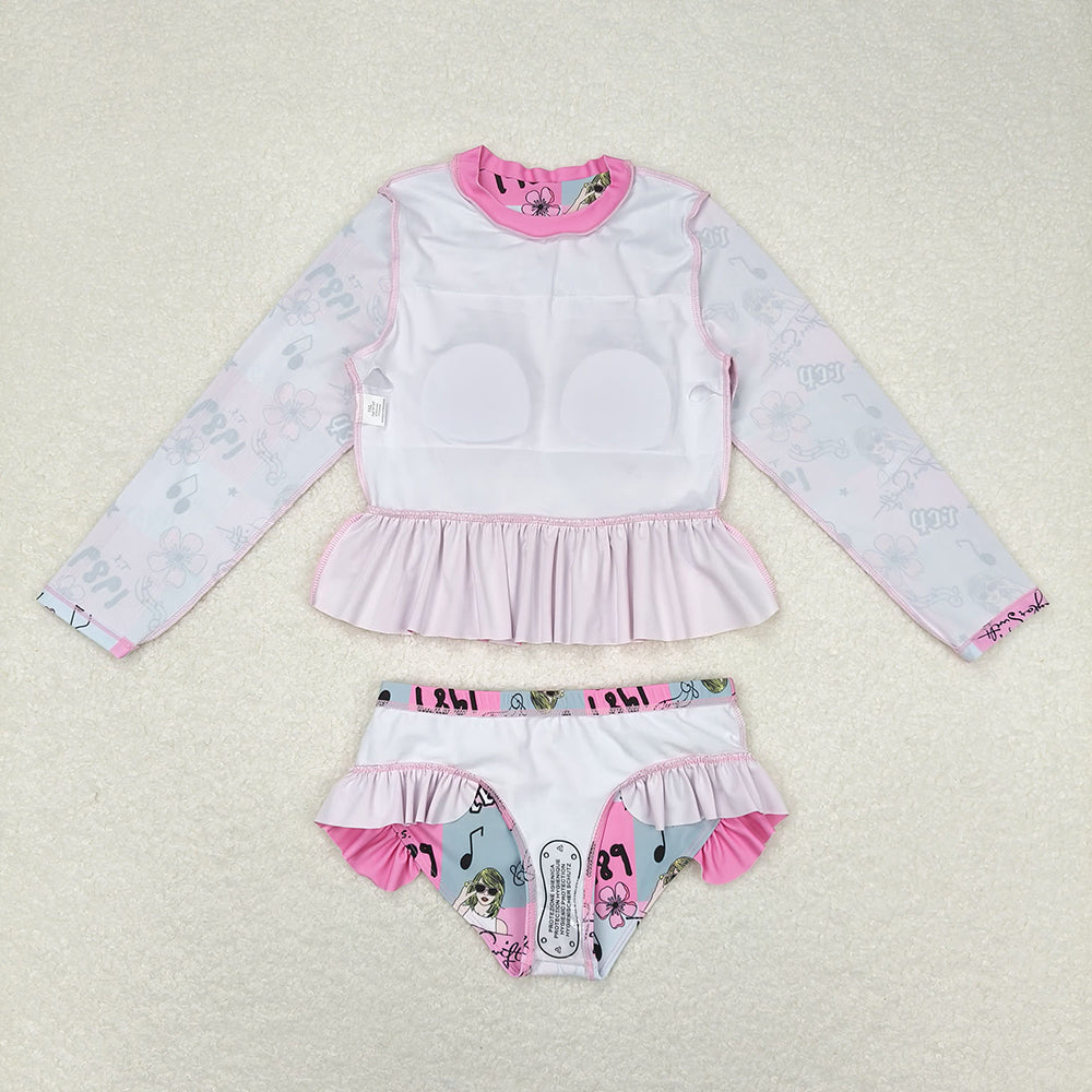 Baby Girls Summer Pink Singer Ruffle Top Bummie 2pcs Swimsuits
