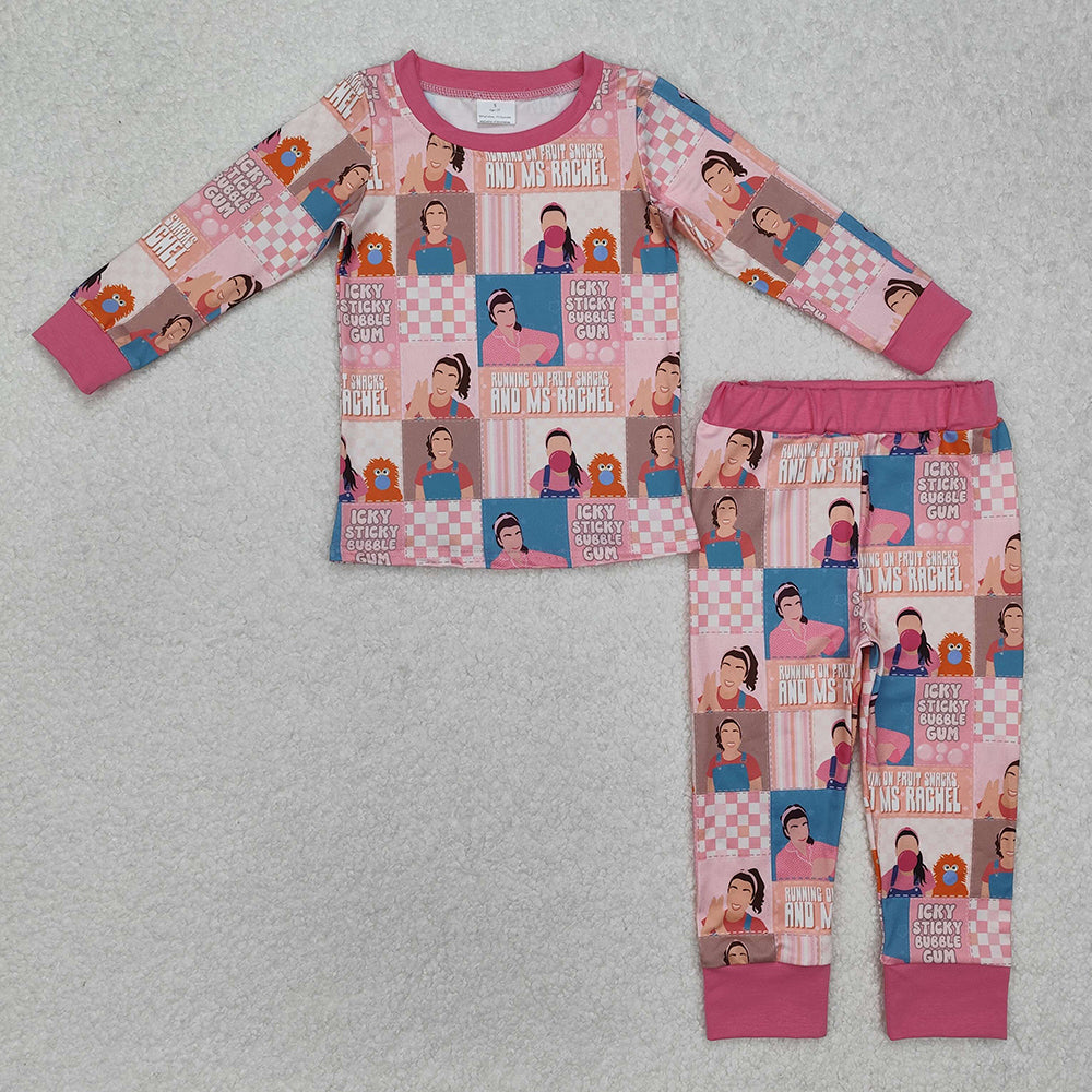 Baby Girls Teacher Pink Checkered Tops Pants Pajamas Clothes Sets