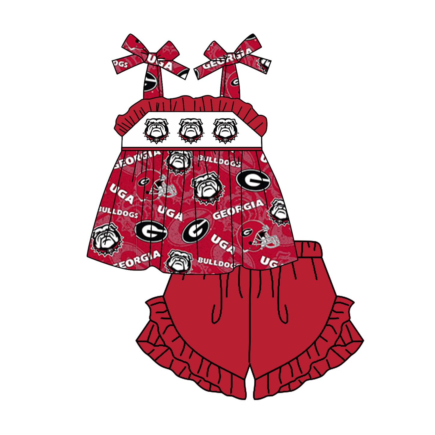 Baby Girls Team Red Dogs Straps Tunic Summer Ruffle Shorts Clothes Sets preorder (moq 5)