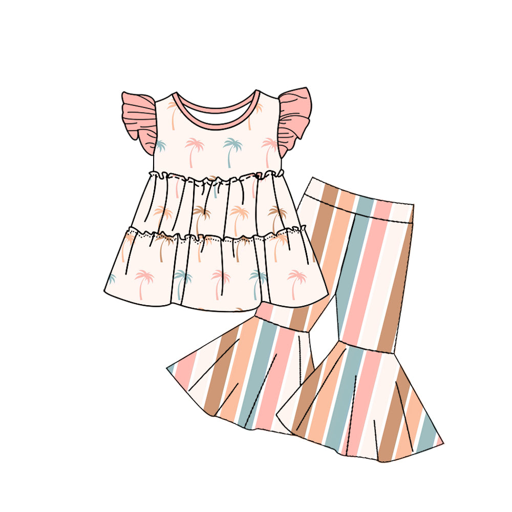 Baby Girls Trees Tunic Top Stripes Bell Pants Clothes Sets preorder (moq 5)