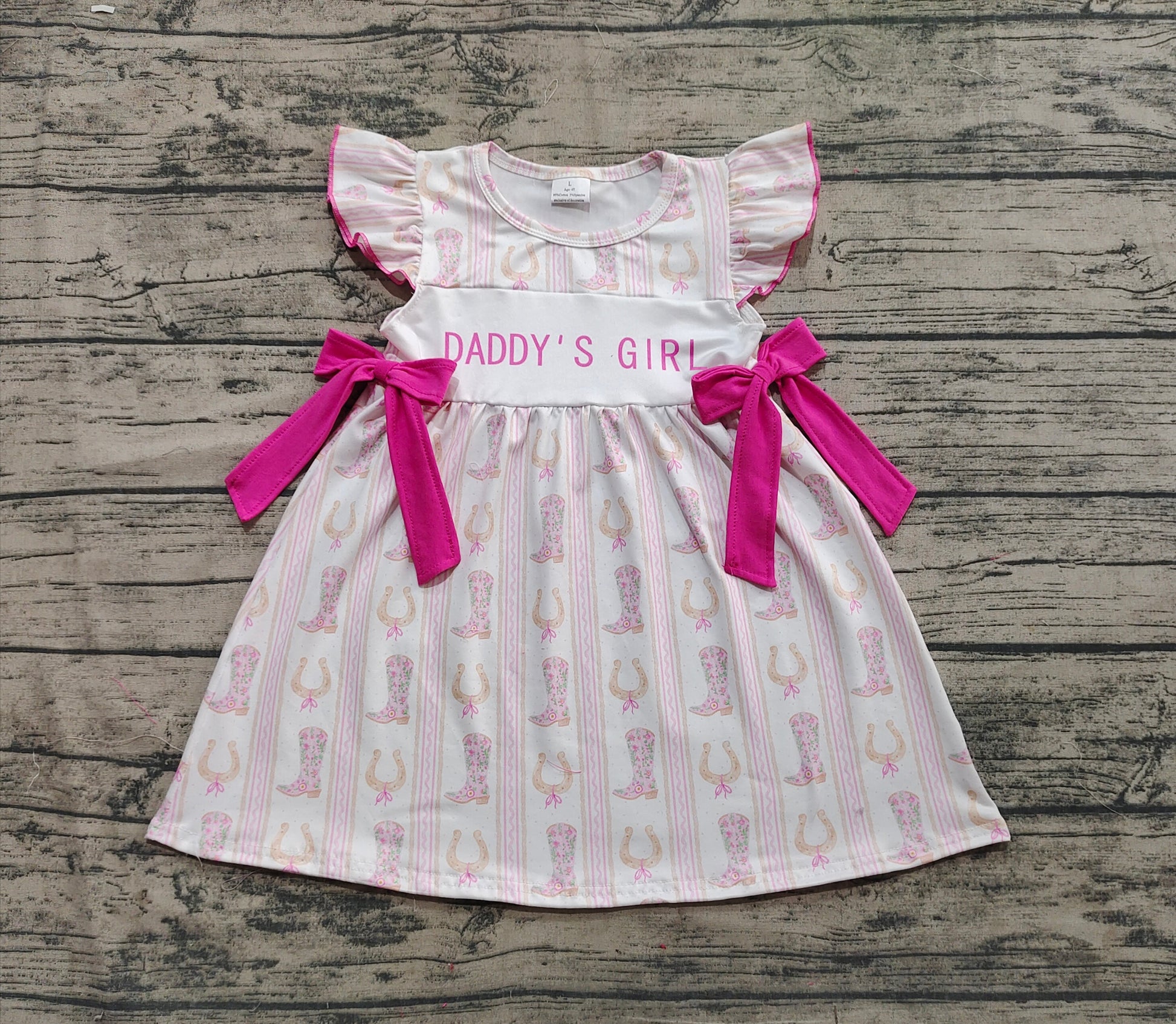 Baby Girls Western Daddy's Girl Bows Knee Length Dresses