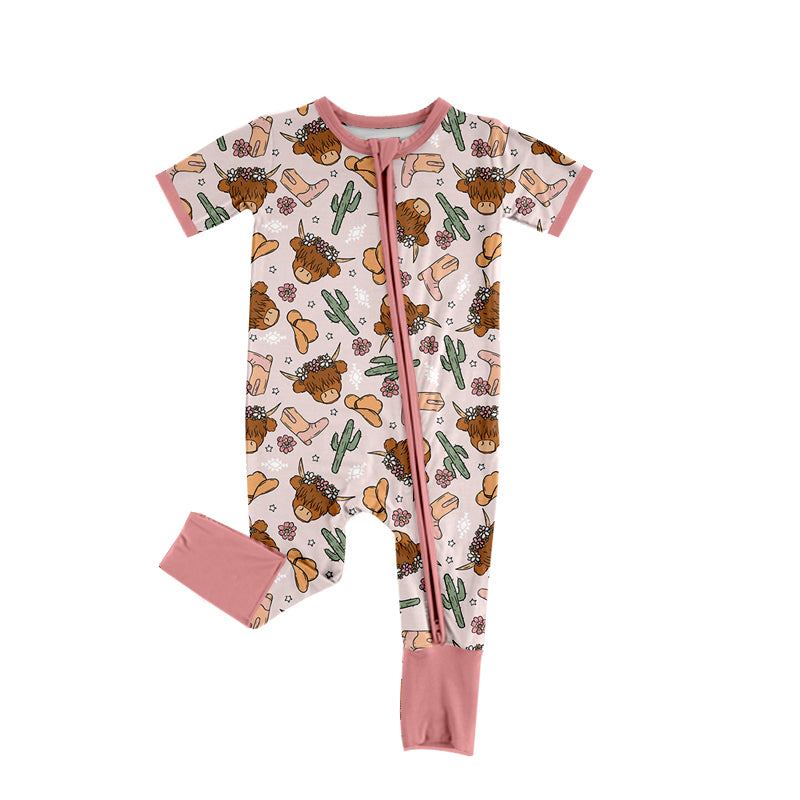 Baby Girls Western Highland Cows Zip Short Sleeve Rompers preorder(moq 5)