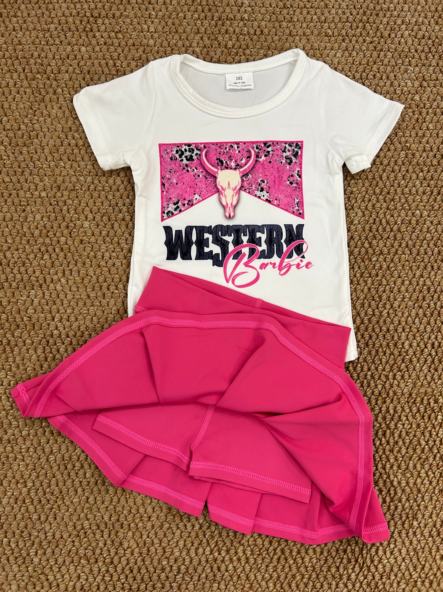 Baby Girls Western Howdy Bull Skull Shirt Hot pink Pleated Skorts Yoga Active Sets