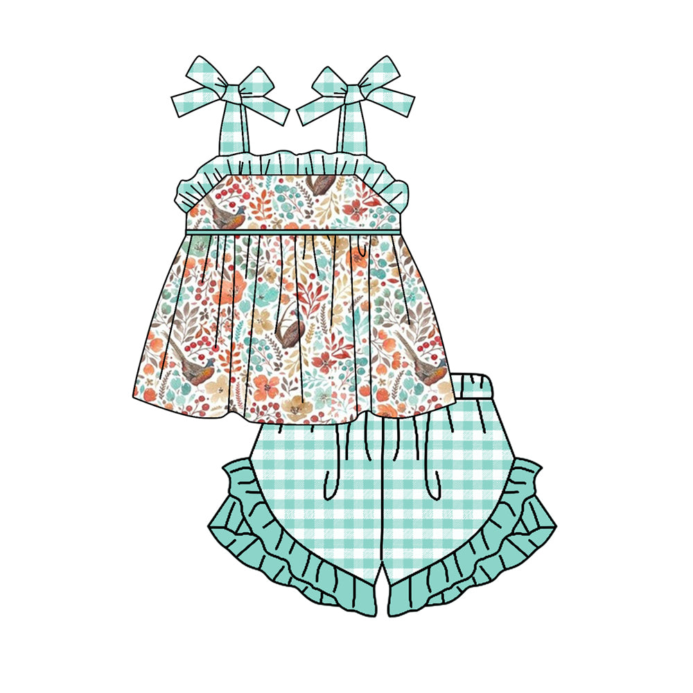Baby Girls Wild Chicken Straps Tunic Ruffle Shorts Clothes Sets preorder (moq 5)