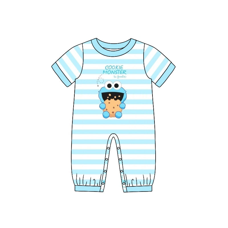 Baby Infant Boys Blue Cartoon Stripes Summer Rompers preorder(moq 5)