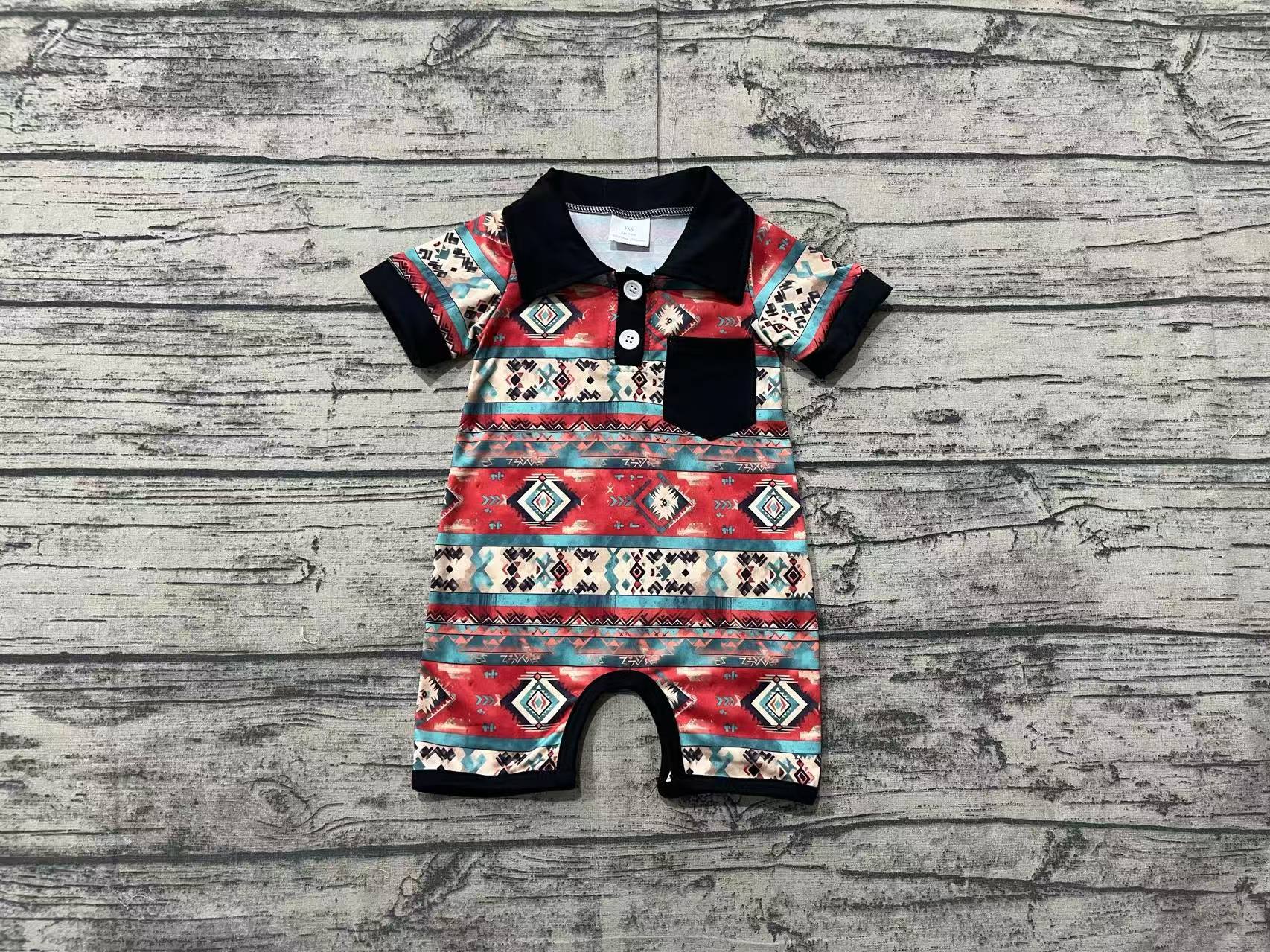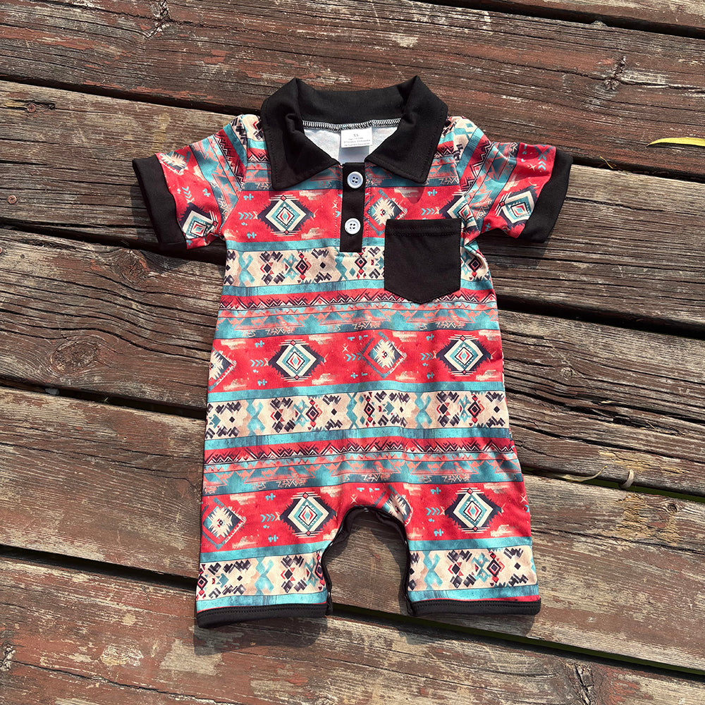 Baby Infant Boys Western Aztec Black Pocket Rompers
