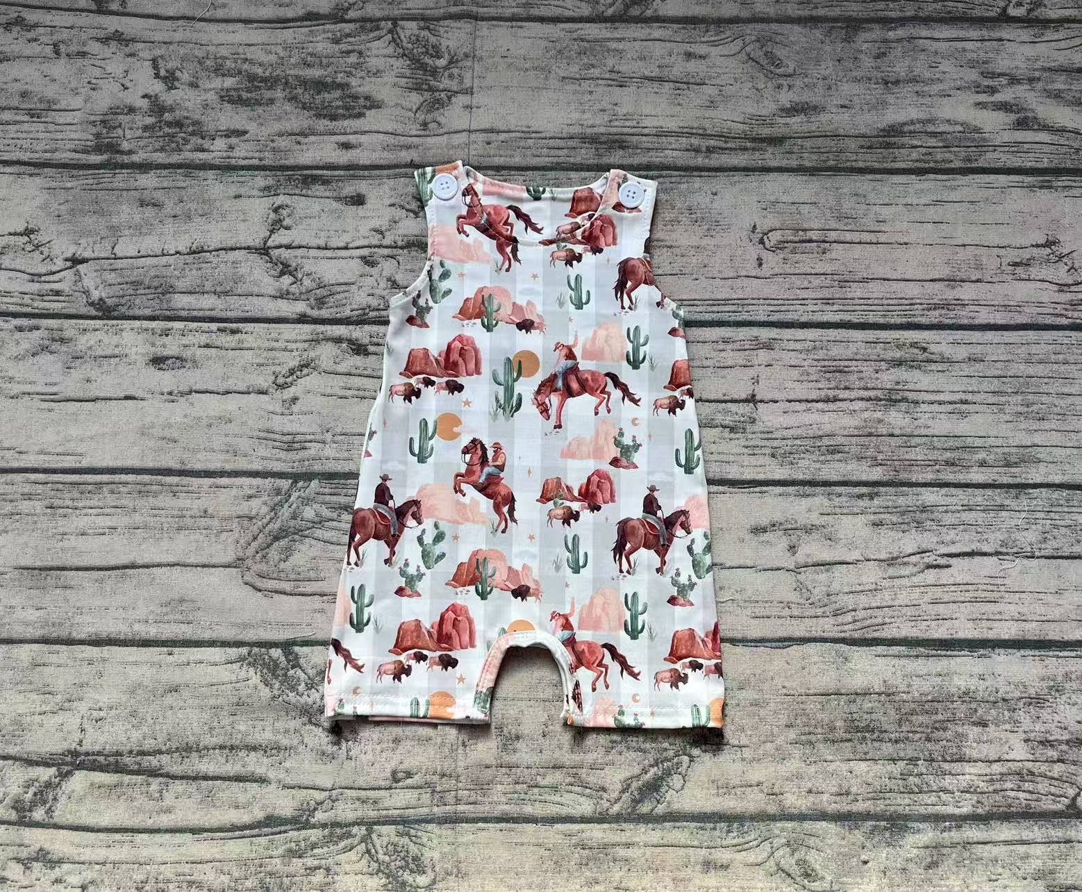 Baby Infant Boys Western Rodeo Cactus Rompers