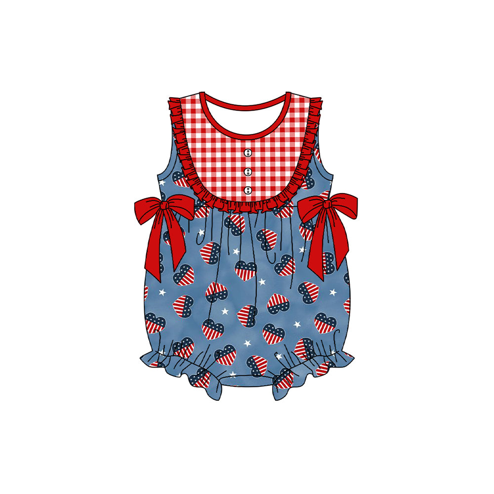 Baby Infant Girls 4th Of July Flag Hearts Bows Rompers preorder