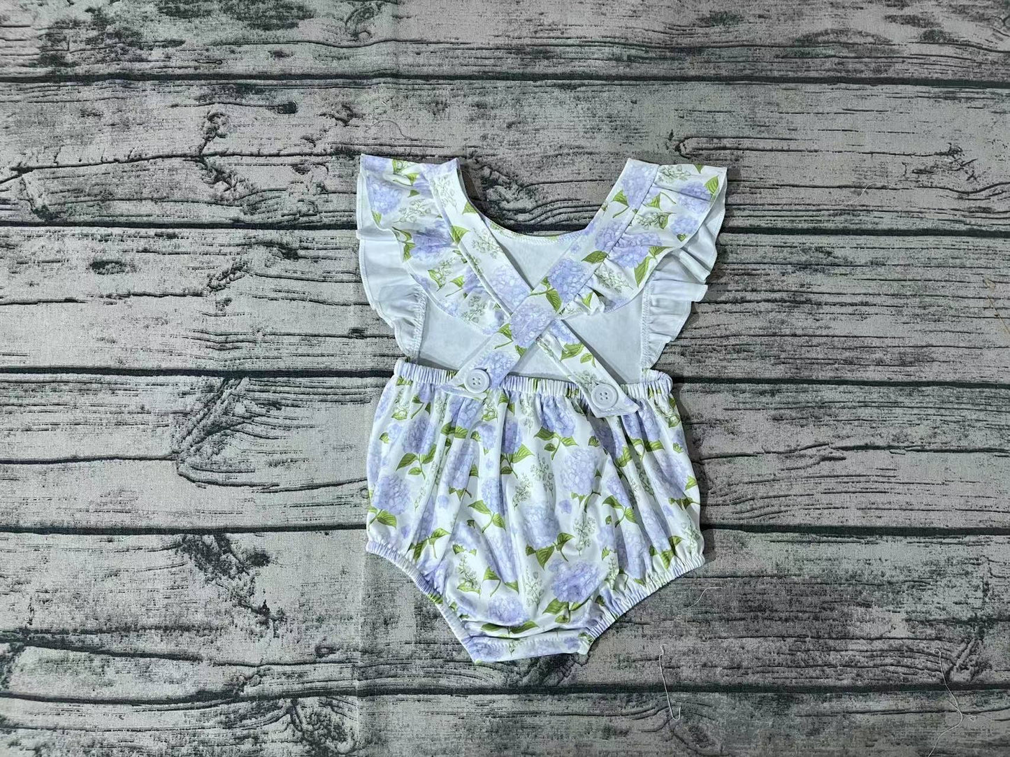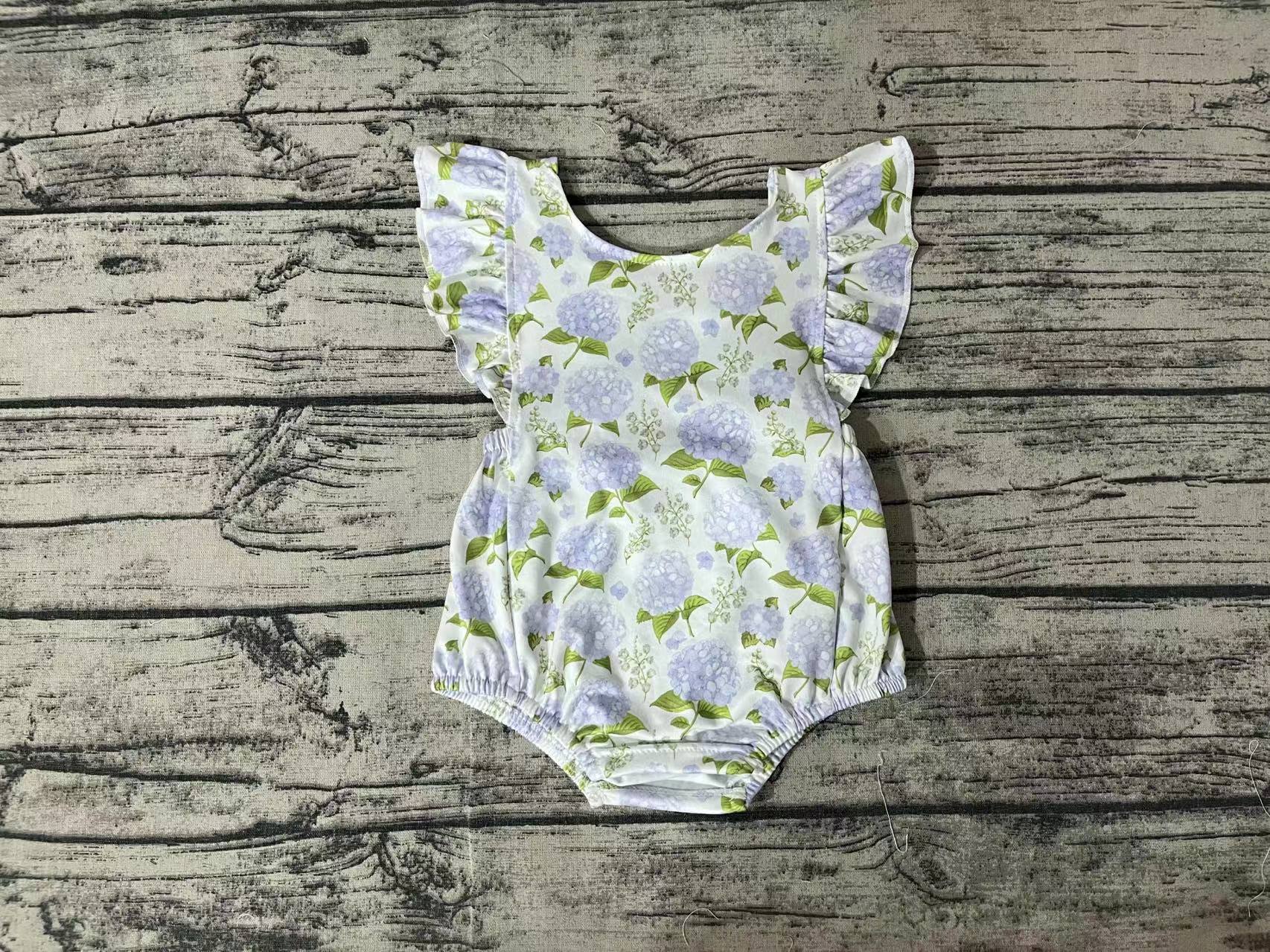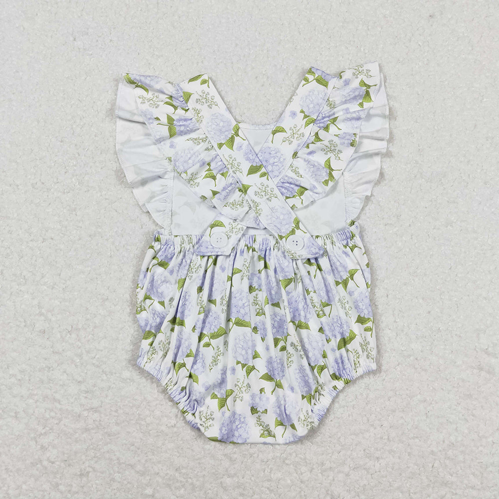 Baby Infant Girls Blue Flowers Ruffle Rompers