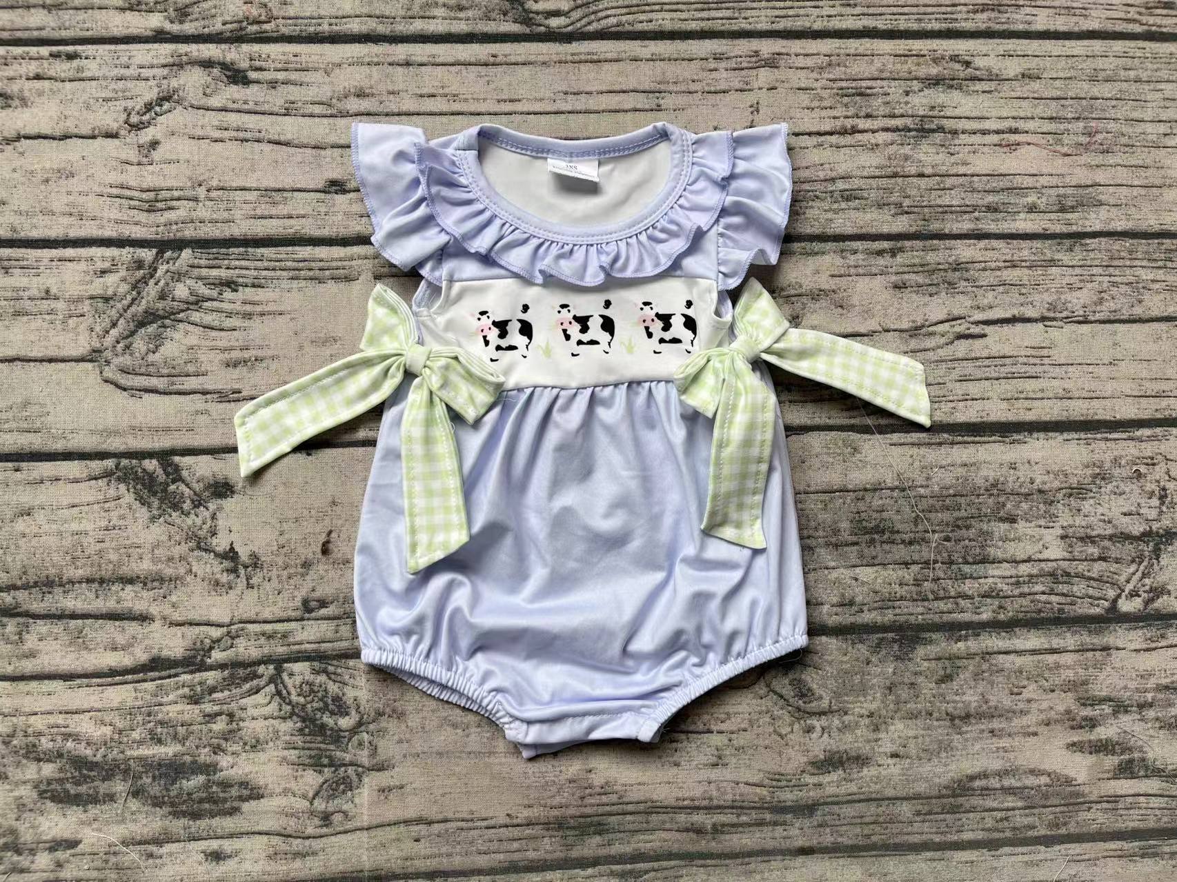 Baby Infant Girls Bows Cows Flutter Sleeve Rompers