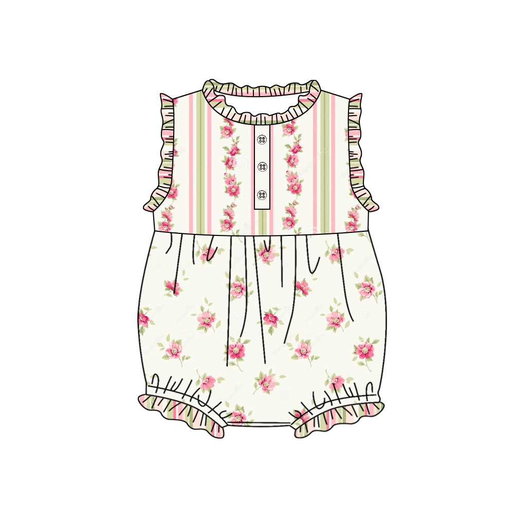 Baby Infant Girls Green Red Flowers Sleeveless Summer Rompers preorder(moq 5)