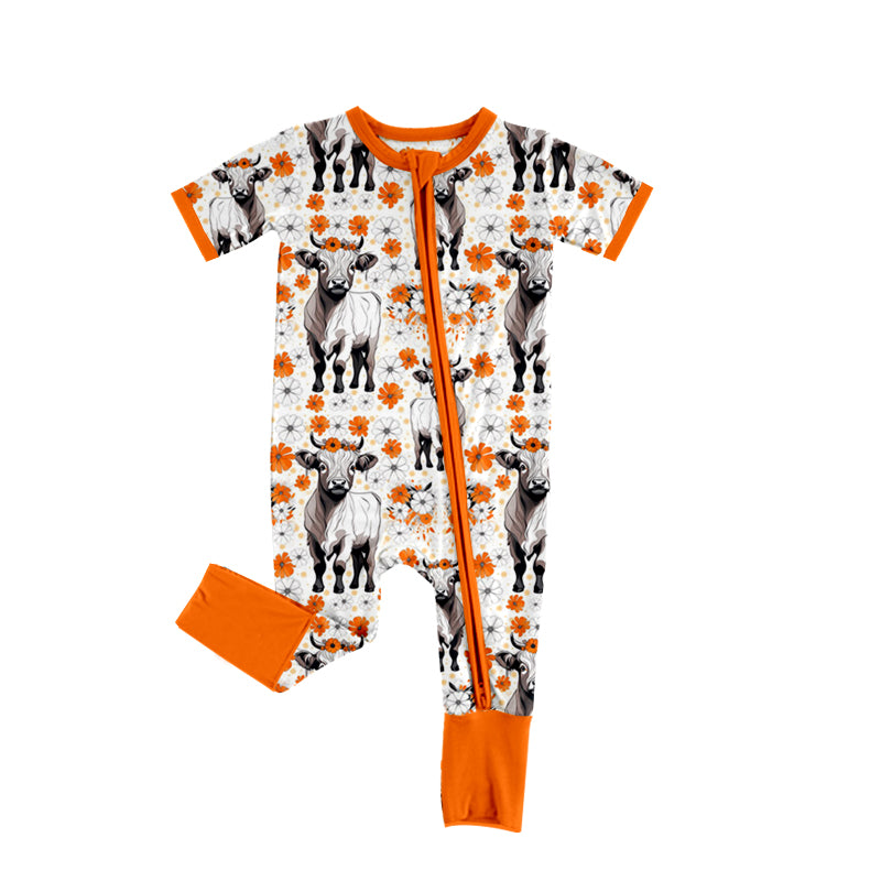 Baby Infant Girls Orange Flowers Cows Zip Rompers preorder(moq 5)