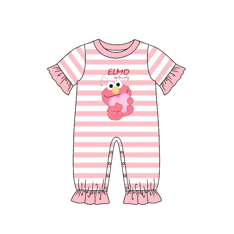 Baby Infant Girls Pink Cartoon Stripes Summer Rompers preorder(moq 5)