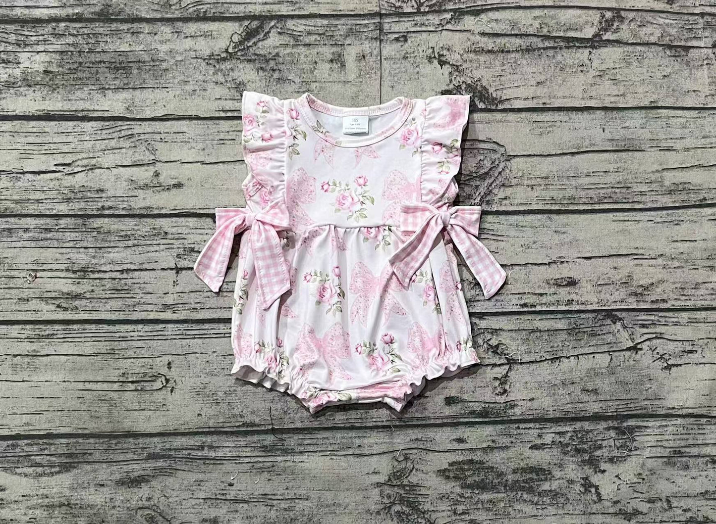 Baby Infant Girls Pink Flowers Bows Rompers